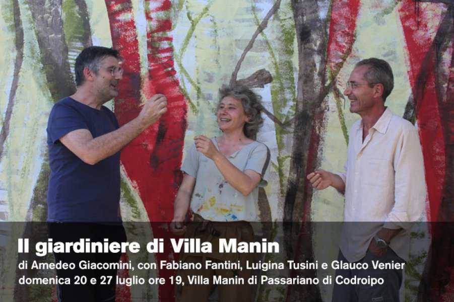 Questo riuscito “romanzo d’occasione” dello scrittore e poeta di Varmo ispira oggi una performance artistica insolita e multidisciplinare che riunisce tre artisti molto apprezzati della nostra Regione: l’attore Fabiano Fantini, il pianista Glauco Venier e l’artista visiva Luigina Tusini. Sabato 13 settembre, alle ore 19, nel Parco di Villa Giacomini a Varmo (in caso di maltempo, Villa Giacomini) (l’ingresso sarà libero), sotto gli alberi del parco della Villa, i tre artisti daranno vita alle pagine del diario del Giardiniere di Villa Manin, attraverso la recitazione, la pittura e la musica, alla ricerca di quella capacità di entrare in sintonia con la natura che abita in ognuno di noi. I viali del parco, le maestose architetture della Villa che dialogano con il territorio circostante, diventano spazi mentali, luoghi dell’anima in cui i tre artisti interagiscono nella concretezza della realizzazione scenica. Uno spartito di azioni in cui il lavoro fisico dei performer, le parole, la musica, le immagini, siano mediazione, un divenire di senso ed emozioni che ripercorrono la storia della villa, i fasti e la decadenza, persone e atmosfere, come la straordinaria vita del parco, degli alberi e degli animali che ci vivono.