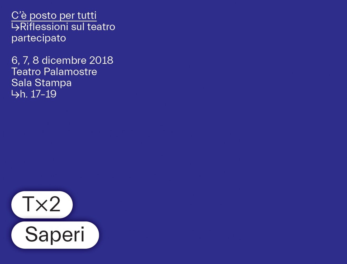 C’è posto per tutti_ Riflessioni sul teatro partecipato, tre pomeriggi di approfondimento - giovedì 6, venerdì 7 e sabato 8 dicembre dalle ore 17 alle ore 19 al Teatro Palamostre di Udine - con registi, critici teatrali, direttori di festival e teatri, docenti universitari.