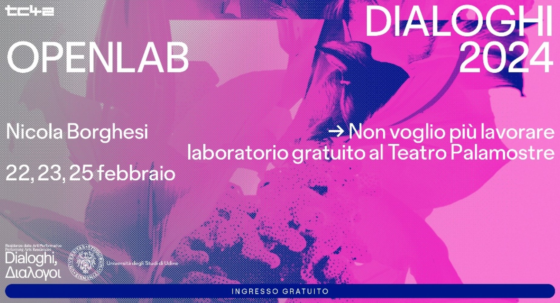 Teatro Contatto annuncia il primo Laboratorio del 2024. Dialoghi Open Lab è un percorso di laboratori gratuiti condotti da artiste e artisti del teatro contemporaneo e realizzati in collaborazione con Università degli Studi di Udine e con Dialoghi - Residenze delle arti performative a Villa Manin