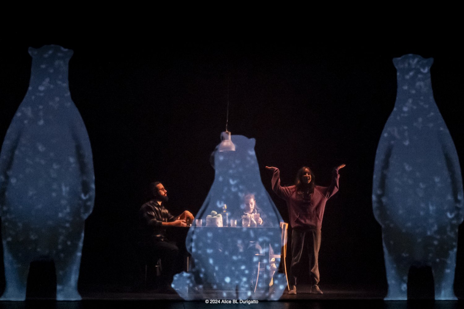 Diretto da Fabrizio Pallara, lo spettacolo unisce la narrazione teatrale con il linguaggio delle videoproiezioni. Gli orsi, invisibili agli altri personaggi, prendono forma attraverso immagini video che mostrano al pubblico lo sguardo di Lucy, rendendo visibile il suo mondo interiore. Tratto dal testo di Karin Serres, tradotto da Federica Iacobelli con la collaborazione di Claire Uzenat, lo spettacolo Lucy/Gli Orsi porta sul palcoscenico Luca Giacomini, Grazia Nazzaro e Carolina Signore, la voce di Tommaso Lo Cascio e le illustrazioni video di Massimo Racozzi. L’aiuto regia è di Roberta Ferrari.