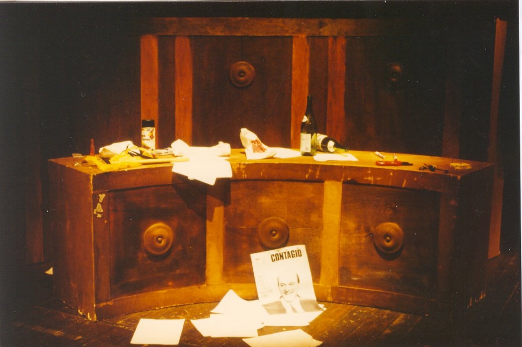 «L'uomo rosso», un profondista che sta precipitando nella fossa oceanica, chiuso nella camera iperbarica staccatasi incidentalmente dai forti cavi che la ancoravano alla nave d'appoggio, ora abbandonata all'oblio del buio delle profondità, con un piccolo uomo dentro che cerca di comunicare con la nave appoggio. Un piccolo uomo che chiede informazioni, istruzioni, indicazioni, che chiede il senso di quello che sta avvenendo, mentre la distanza tra la nave appoggio e il nulla aumenta sempre più. E i riferimenti si allontanano. E il nulla si avvicina, accompagnato da una strana euforia, forse l'euforia degli abissi, un'euforia che è uno stato dell'essere, che è un paesaggio abitato da mostri marini, disperate leggerezze, frenetici tip-tap e parole. Parole che si susseguono, sovrapponendosi, perdendo il senso, il filo, il fine.. E si accumulano in angoli polverosi di stanze senza ascoltatori, vuote, stancamente. Stanchi. Stanchi di parlare senza essere ascoltati, di trascorrere una vita e consumare una generazione in un continuum oratorio inascoltato, dove le parole diventano solo attimi, e il discorso diventa tempo, e il parlare diventa un modo di trascorrere il tempo, solo il trascorrere del tempo. Come i lunghissimi interventi di qualche anno fa dei parlamentari radicali, quando con l'«ostruzionismo» cercavano di non permettere l'approvazione di certe leggi, impegnandosi in lunghissime maratone oratorie di ore e ore. In «Ostruzionismo radicale» il monologare è il susseguirsi di storie slegate, personali, insensate, vere: gli ultimi venti minuti dopo più di cinquanta ore di intervento. Il parlamentare è stressato, affaticato, affamato e assetato, dimentico della legge a cui si sta opponendo, di fronte ai banchi vuoti di un parlamento dove l'unica presenza è presunta: il Presidente, a cui il parlamentare si rivolge. Che forse è Mic a cui si rivolgeva il profondista cercando di parlare con la nave appoggio. Che sono forse entrambi il nostro bisogno di dire. Per affermare di essere.