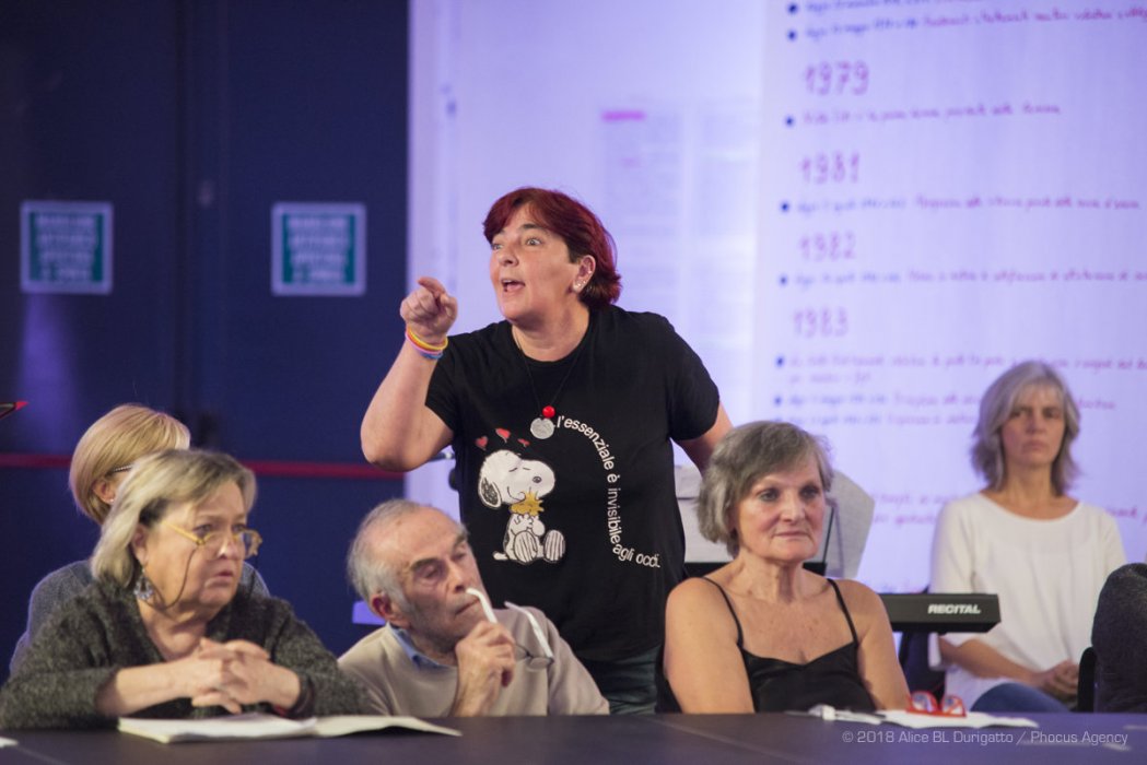 Le “esperte di vita quotidiana” sono tutte donne: hanno risposto alla call in più di 100, di età fra i 16 e gli oltre 70 anni, hanno partecipato al laboratorio, si sono preparate allo spettacolo e sono state parte attiva del gioco teatrale.