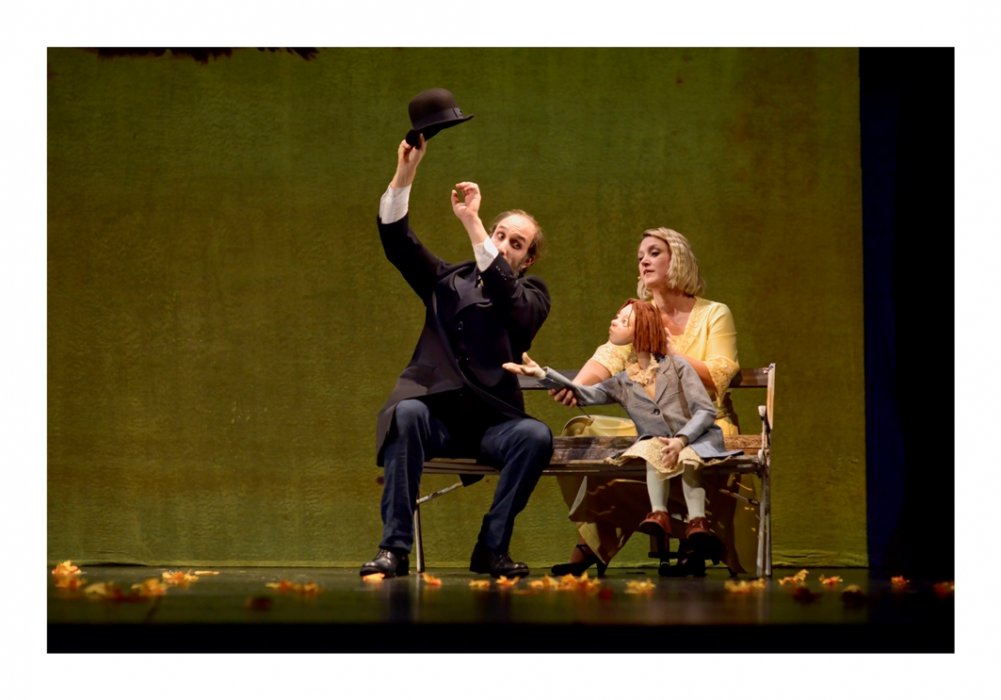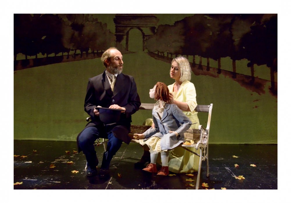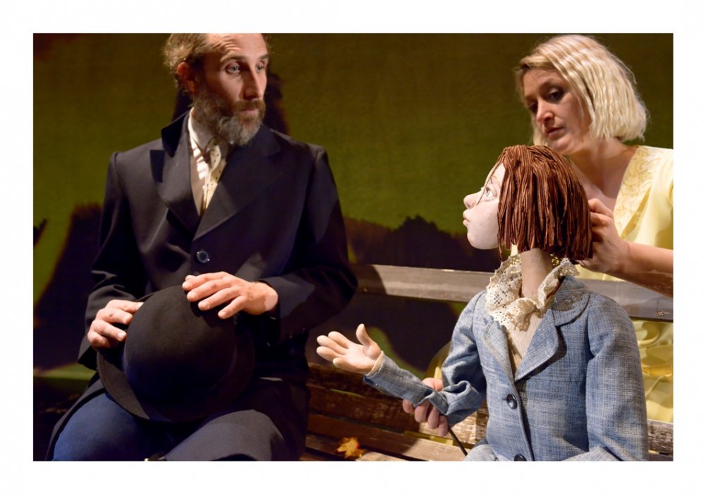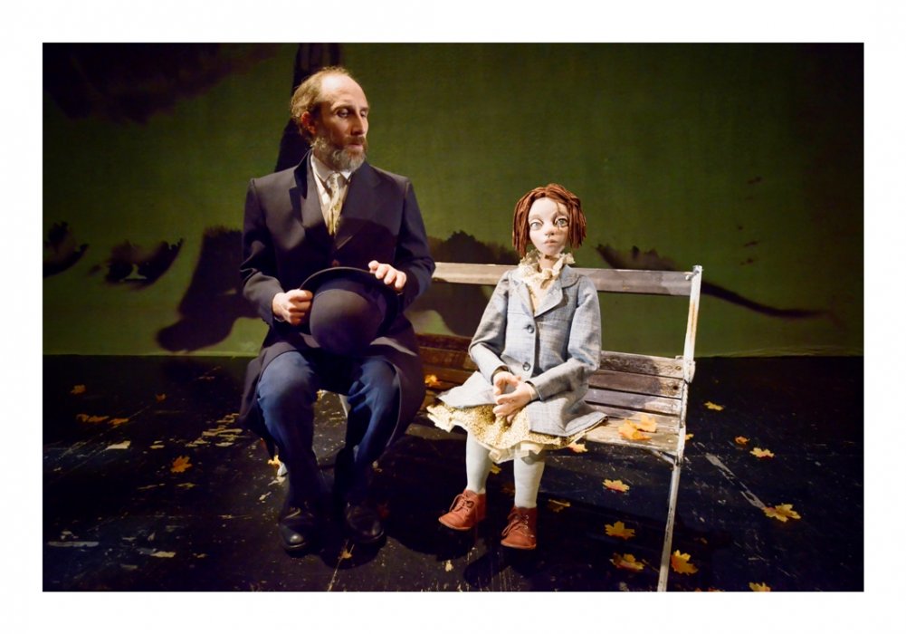 Tutto questo è esplicitato in scena dall’amicizia tra lo scrittore ceco Franz Kafka, interpretato con estrema intensità da Valerio Malorni, che si finge il postino delle bambole, ed Elsi, una bambina che ha smarrito la sua bambola Brigida, qui rappresentata da un’efficace e vivissima marionetta, creata da Ilaria Comisso e animata con bravura da Desy Gialuz.