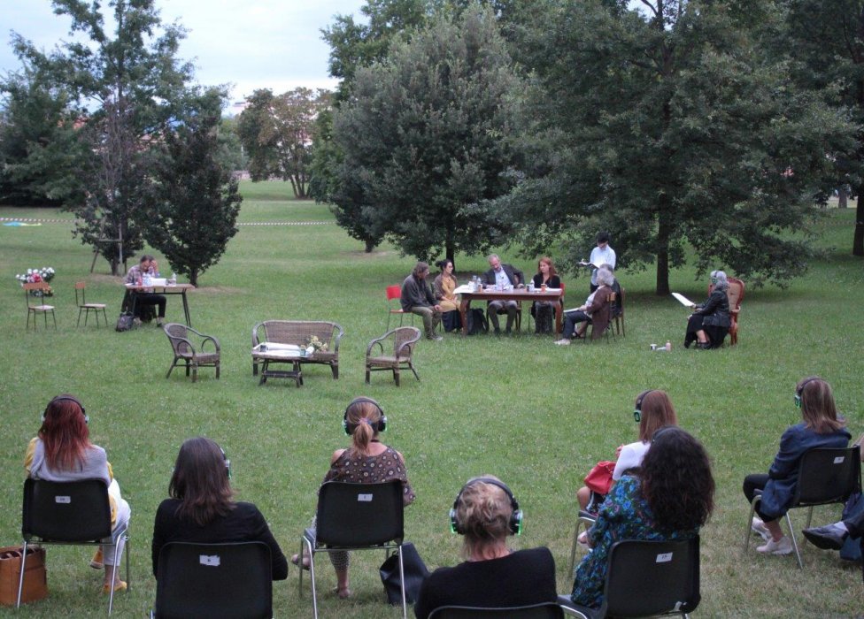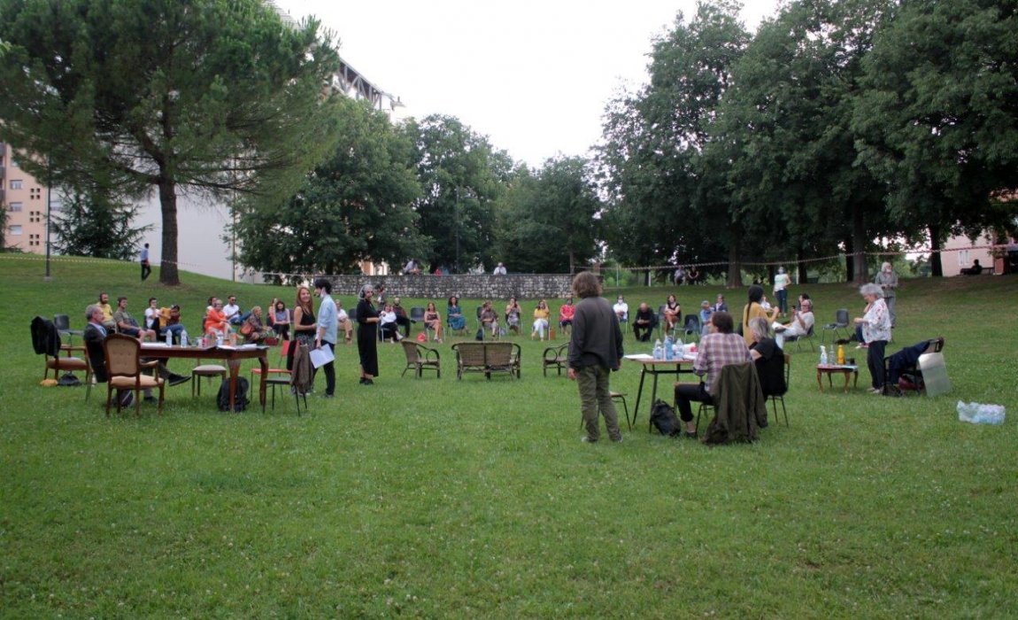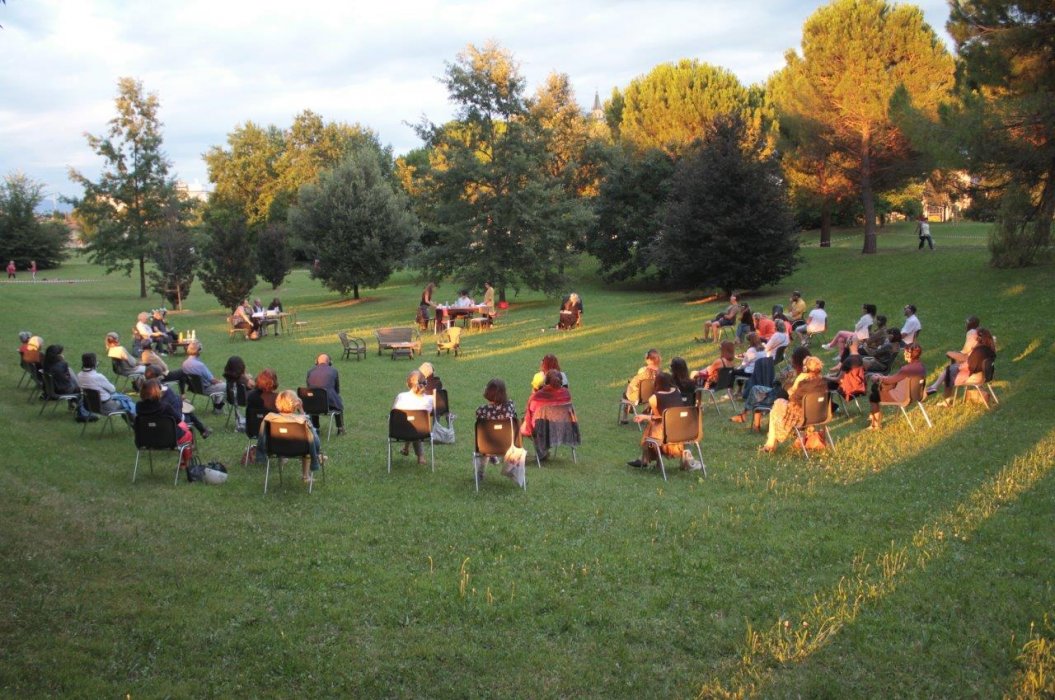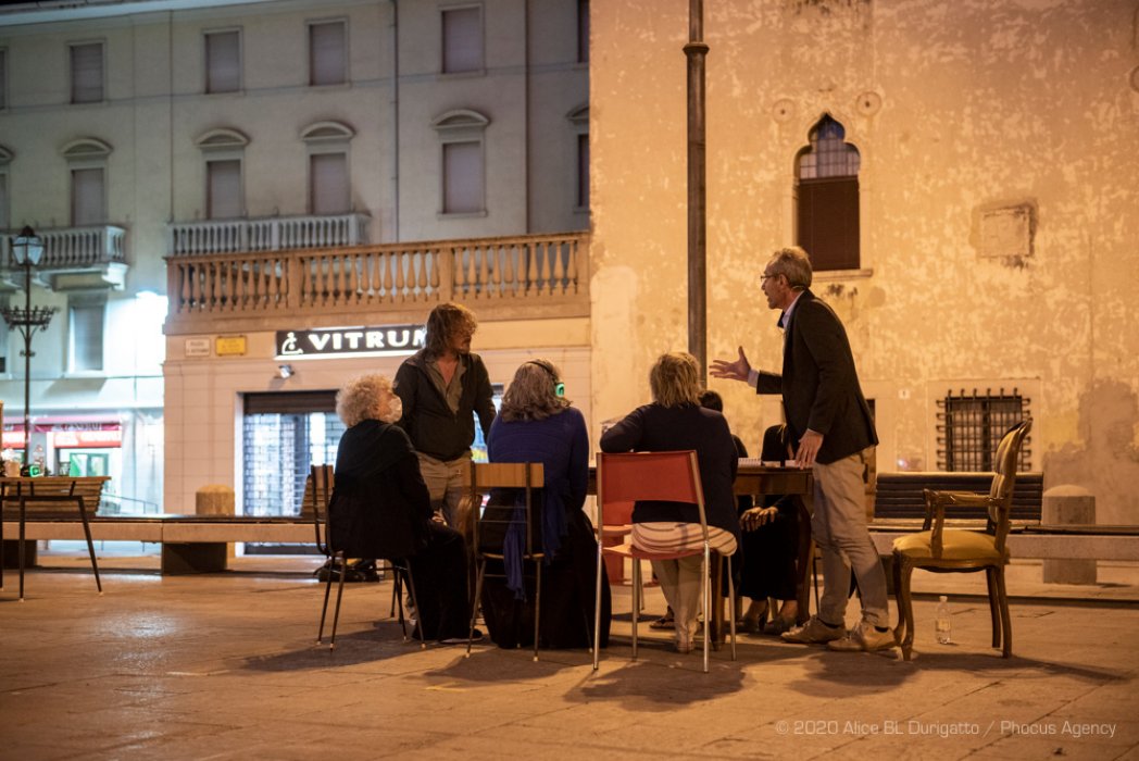 Grazie ai bravissimi Gabriele Benedetti, Paolo Fagiolo, Fabiano Fantini, Natalie Fella, Klaus Martini e Nicoletta Oscuro e al coinvolgimento di due splendide signore che seguono i nostri laboratori di teatro partecipato Pepa Balaguer e Daniela Fattori, l’esperimento è iniziato in luglio 2020, nel modo migliore, al Parco Moretti, nella ex Chiesa di San Francesco e prosegue con piccoli gruppi di spettatori dotati di cuffie per poter intimamente essere partecipi di ogni respiro e di ogni sussurro anche in luoghi aperti e pubblici. Grazie a tutt* coloro che vorranno accompagnarci in questa nostra fioritura, questa nostra piccola rinascita del teatro.