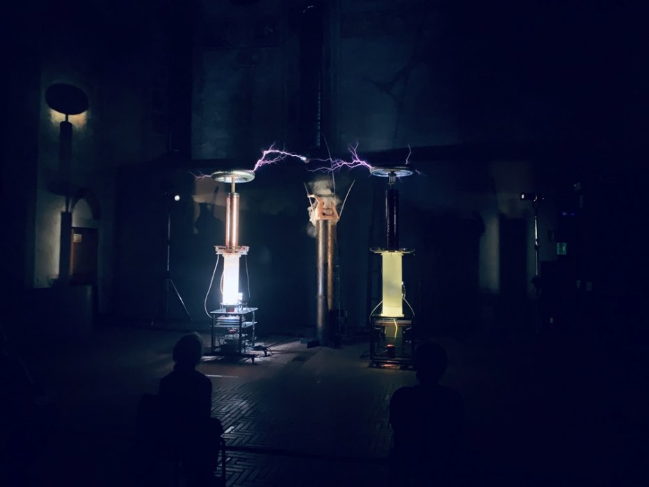 In questa performance Masque teatro porge un ulteriore momento della sua ricerca sulla natura del movimento. Il riferimento va alla cronofotografia di Marey e al concetto warburghiano di vita in movimento dell’immagine. Tra le due si insinua potente la visione del disarticolato procedere delle scariche disruptive delle macchine di Tesla.