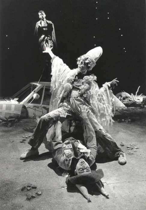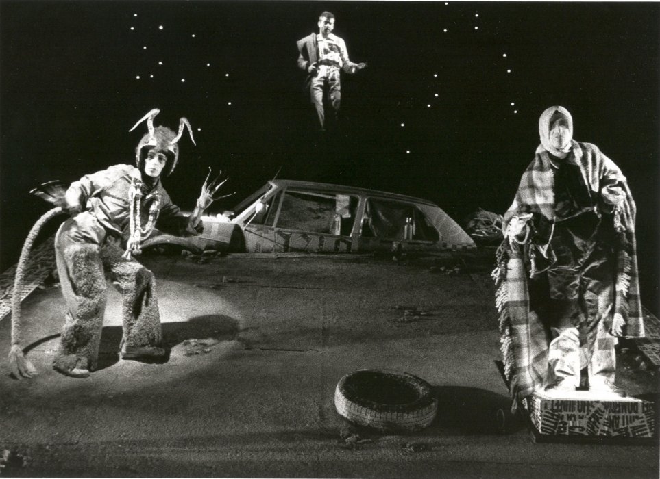 Le tentazioni di Toni, primo momento di una trilogia inaugurata con lo spettacolo Gloria (prodotto dai Teatri di Thalia nel dicembre '91), è un atto unico di grande e notevole inventiva, in cui si possono riscontrare quel rigore stilistico e quella originalità maturata da Andrea Taddei durante un lungo itinerario artistico, che lo ha visto regista di uno dei più interessanti gruppi di ricerca teatrale degli anni ottanta: "Padiglione Italya", oltre che di spettacoli prodotti dal Centro per la Ricerca e la Sperimentazione Teatrale di Pontedera, dall'ATER, dal Festival di Santarcangelo, dal Consorzio Teatro Settimo Cabaret Voltaire, ed altri. Si tratta di uno spettacolo in cui le immagini, arricchite da un'inesauribile inventiva scenica, si fondono in un armonico "disegno" che richiama l'iconografia medioevale. Una visione animata da un linguaggio che, con leggerezza ed ironia, si compone intrecciando abilmente, con ritmi ed assonanze, giochi di parole e luoghi comuni, citazioni e riferimenti colti. In un deserto africano attraversato da rally, Toni, pilota della Parigi-Dakar, dirottato da una forza metafisica, si perde per confrontarsi con una dimensione a lui, finora, sconosciuta. La velocità e le parole del mondo che Toni ha lasciato si convertono in immobilità e silenzio, intuizione di Dio. La scoperta dello spirito lo espone, però, alle insidiose prove che la notte sahariana ha pronte per lui: un Tentatore chiacchierone in tutti i suoi travestimenti, mescolando teologia e automobilismo, cercherà di convincere il protagonista a lasciare la sua vantaggiosa posizione, sospesa in aria, in alto sul tetto dell'auto arenata nella duna. Toni, evidentemente impreparato all' esperienza mistica che sta vivendo suo malgrado cercherà nel silenzio e nella non-conoscenza la forza in grado di sostenerlo al di sopra dei pericoli. Il sopraggiungere dell'alba libera il surreale eremita dalle presenze notturne, ma i fantasmi annunciano la loro riscossa per la notte successiva.
