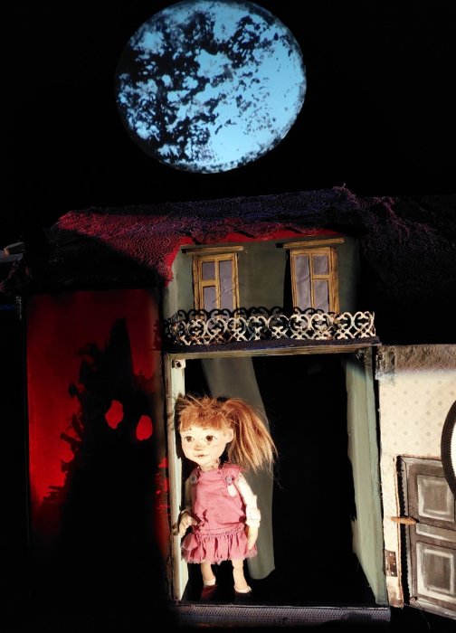 Una casa che si apre e si snoda tra scale, porte e stanze in un’avventura dove i rumori nascosti, gli scricchiolii, le porte che cigolano, generano suoni, evocano immagini, spingono la mente della protagonista a combattere creature paurose e mitiche, prima informi e poi sempre più concrete, prendendo connotazioni lupesche, animale stereotipo delle paure notturne. Quando qualcuno le sa ascoltare e sentire così bene, riesce anche a farle diventare vere… o forse lo sono da sempre.