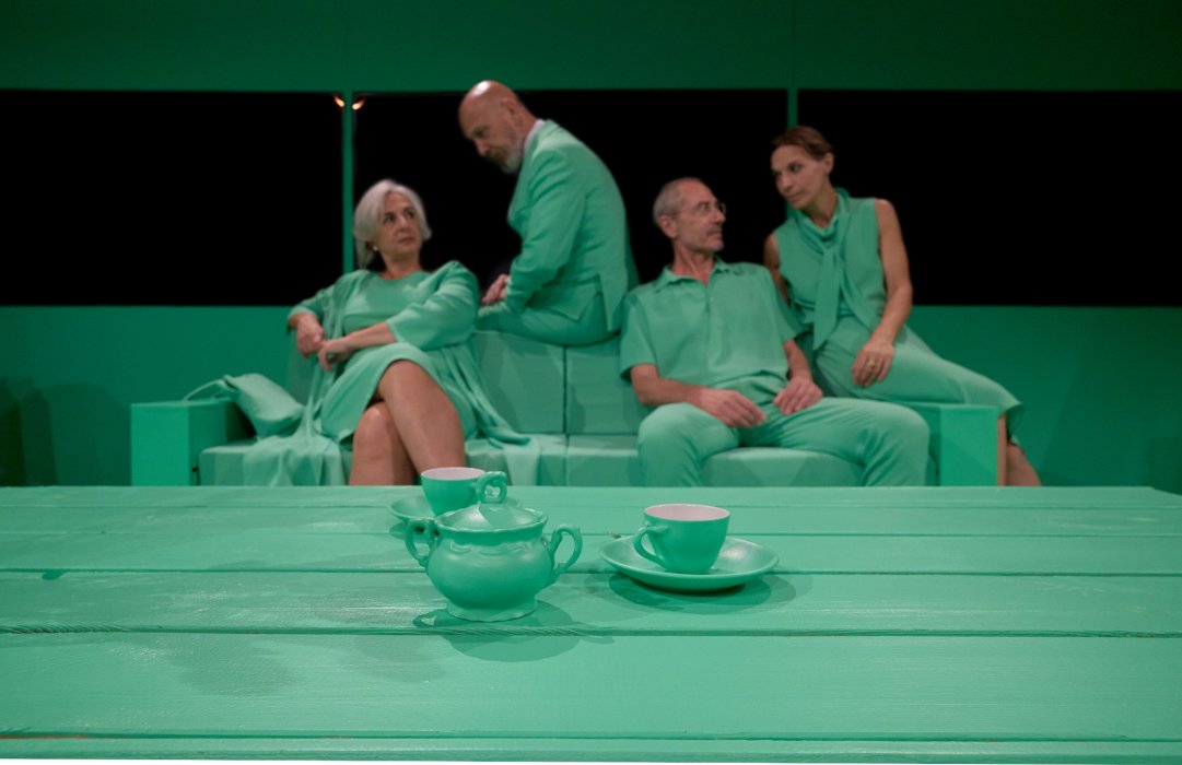 A partire dalla preziosa didascalia di Yasmina Reza che recita “un salotto, niente di realistico”, abbiamo allora immaginato una scatola scenica - come fosse una gabbia o un acquario - per mettere sotto una lente di ingrandimento - e sotto gli occhi degli spettatori che la circondano - questo insolito ménage crudele che si lascia scrutare e vivisezionare, una sorta di gabinetto anatomico, o un radiodramma semovente.