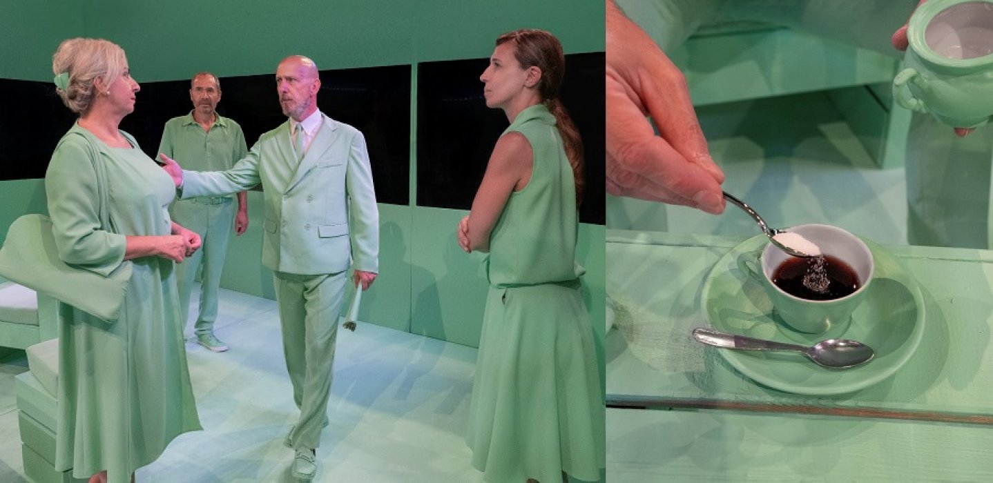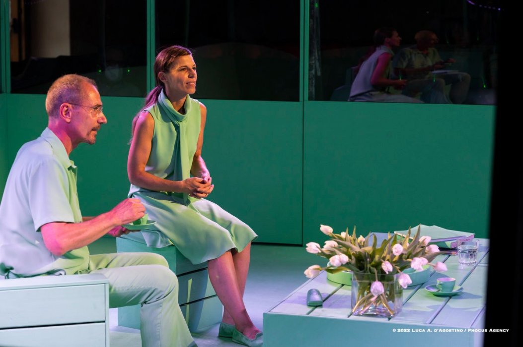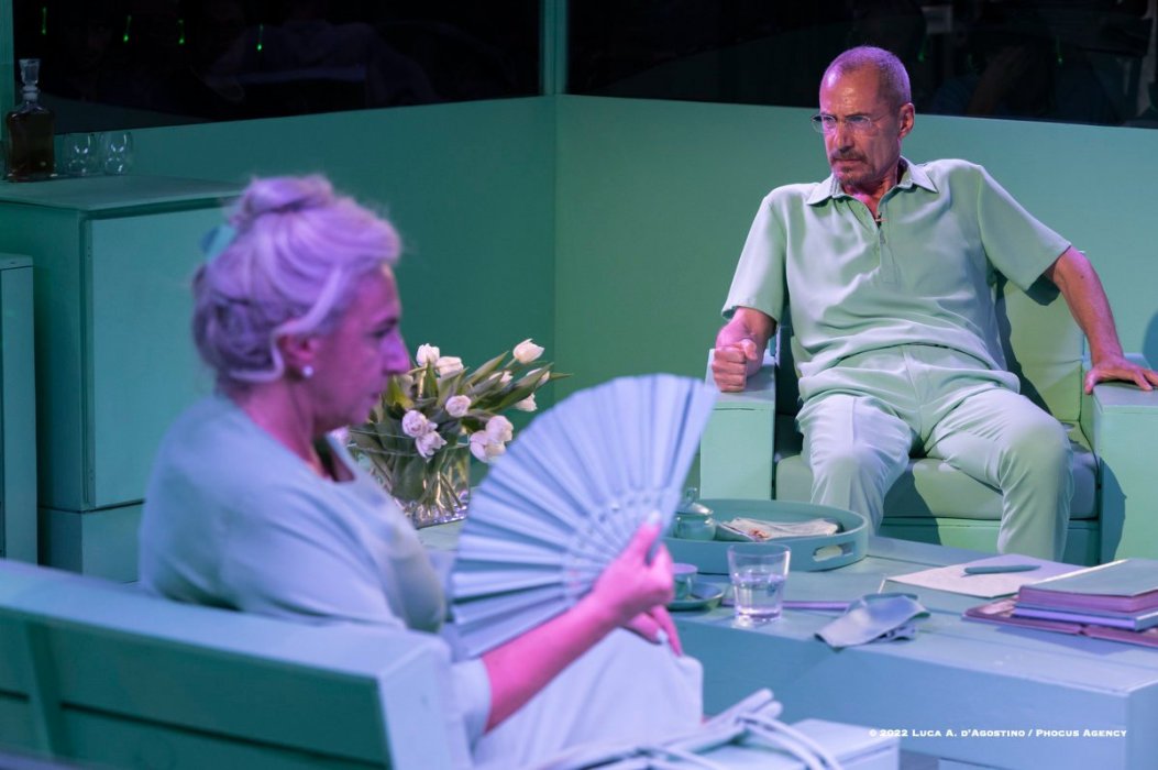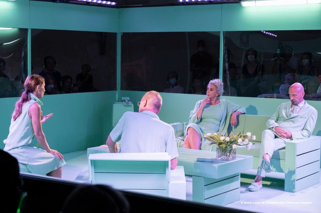 Il salotto sarà ricreato, al centro, in una teca/gabbia di vetro: gli spettatori siederanno tutti intorno a osservare la scena, come degli studiosi in un teatro anatomico.