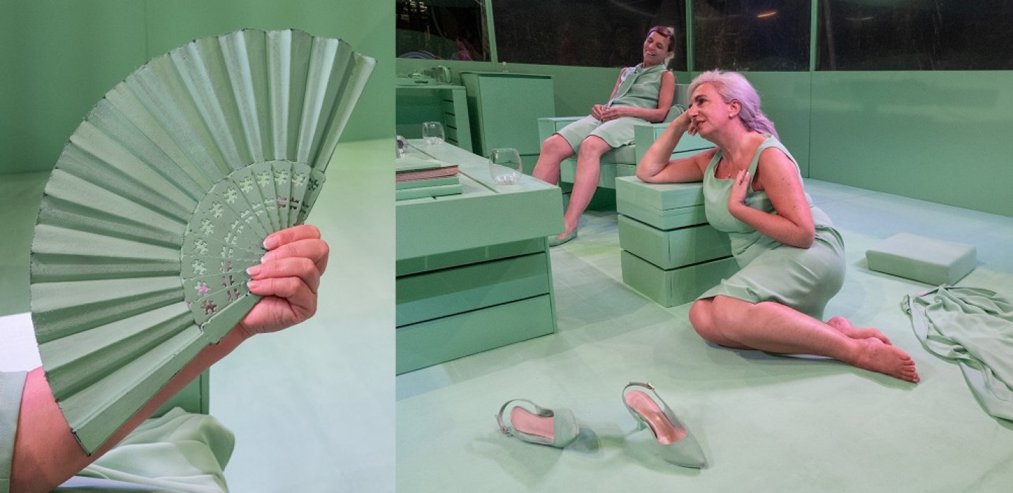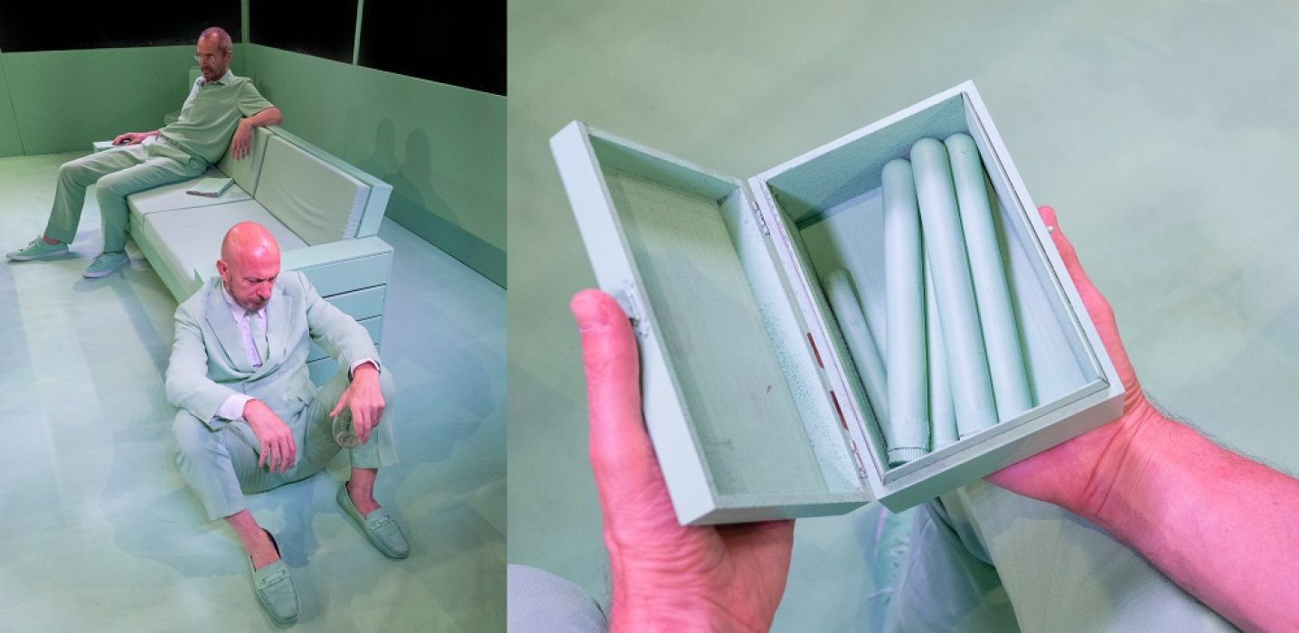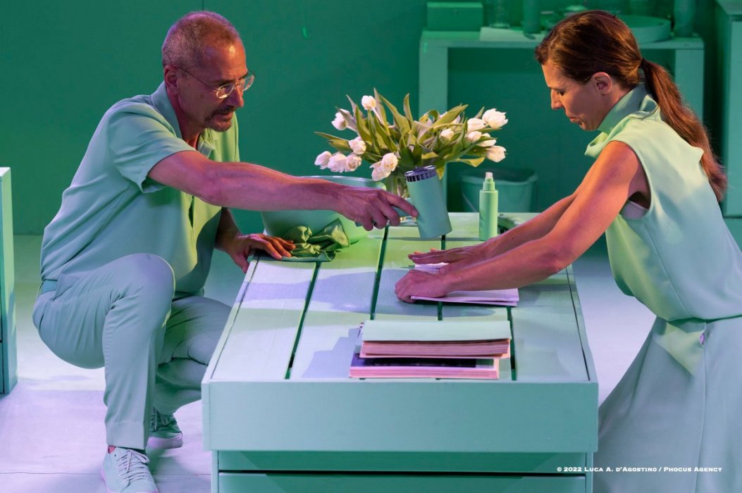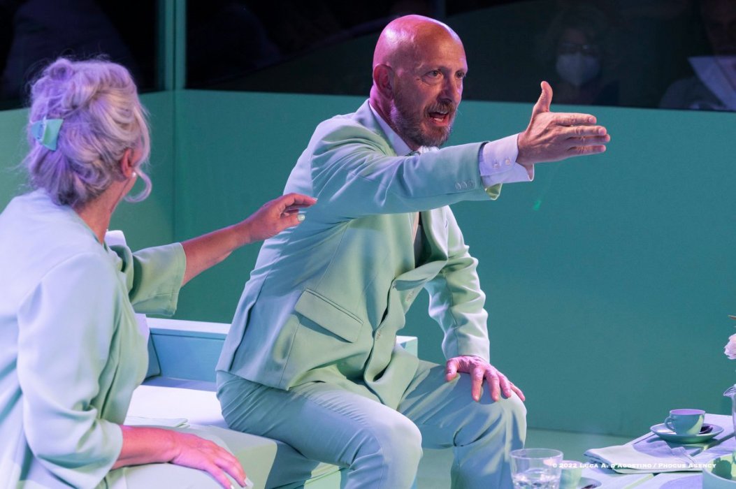 Il salotto sarà ricreato, al centro, in una teca/gabbia di vetro: gli spettatori siederanno tutti intorno a osservare la scena, come degli studiosi in un teatro anatomico.