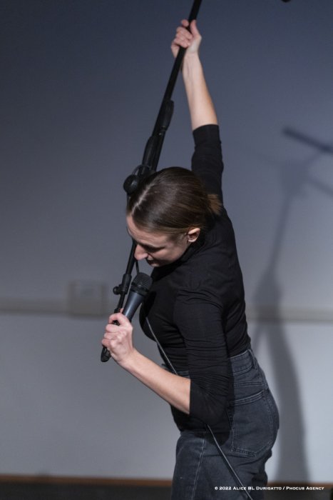 Abbiamo pensato a “Tesla” come ad un ideale prosecuzione artistica del lavoro condotto sulla moglie di Albert Einstein, Mileva Maric, che sfociò nello spettacolo “Mileva”, con Martinovic e Mattia Cason. Maric fu a lungo dimenticata dalla scienza ufficiale, salvo ricomparire praticamente in questi ultimissimi anni come probabile aiutante di Einstein nelle sue più importanti scoperte. Come Tesla, anche Maric morì in assoluta povertà, a lungo malata; si tratta, in estrema sintesi, di due storie che hanno il rifiuto o la diffidenza della comunità scientifica ed economica come caratteristica comune, due grandi figure che, soprattutto nel caso di Tesla, hanno visto la loro opera oggetto più di un culto acritico che di indagine scientifica; riguardo a Maric, pare evidente come la sua biografia e le sue ricerche fondamentali siano state in qualche modo sovrastate dall’ombra di Einstein. I due spettacoli sono pensati come un dittico performativo, in cui gli elementi del primo, “Mileva”, sembrano moltiplicarsi nel secondo; così, come Mileva Maric, nello spettacolo, veniva vestita di microfoni per andare a ricevere un ipotetico Nobel mai proposto nella realtà, così in “Tesla” è la selva dei microfoni a rappresentare il terreno di scontro tra lo scienziato e i suoi finanziatori, fino a trasformarsi in resti di un campo di battaglia al cui altare è stata sacrificata forse una delle più grandi invenzione umani, l’energia gratuita. Così, la danza con cui Mileva veniva per metafora violentata dalla figura-ombra di Einstein, diviene in “Tesla” l’annullamento di ogni danza “umana”, attraverso una sorta di macabro balletto robotico in cui il corpo di Martinovic si muta in macchina senza più sentimento, neppure più doloroso. Ma sono innumerevoli i rimandi tra i due lavori, a partire dalla straniante presentazione di Martinovic in cui, presentando sé stessa, presenta anche le due figure di cui parlerà e di cui, passo a passo, prenderà le parole se non il corpo stesso.