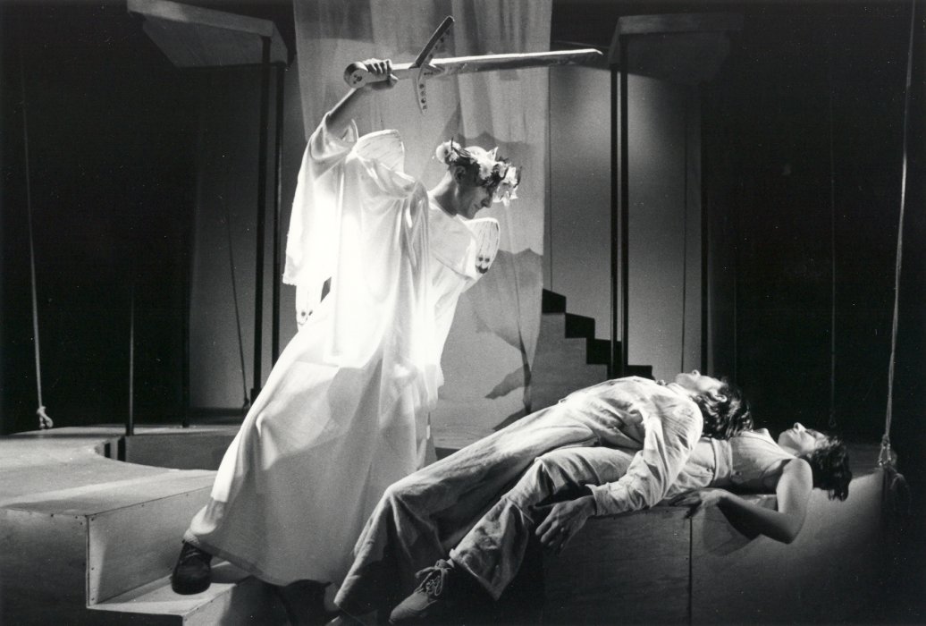 È uno spettacolo viscerale. Uno spettacolo carico di immagini spaventose, particolarmente spaventose perché fanno parte di questo mondo. Indaga l'inferno dentro di noi, quella pulsione che ci porta a desiderare la vita e la morte nello stesso momento... Se qualcuno ha giudicato il testo di Scabia un po' datato, in alcuni passaggi, io l'ho collegato piuttosto a una riflessione antropologica sulla relazione fra desiderio e consumo. È stata, in ogni caso, una mia privata chiave di lettura che non mi è mai interessato rendere manifesta: la nostra ricerca di amore si è modificata a causa della minaccia mortale dell'Aids... L'operazione teatrale vera e propria si è invece sviluppata lungo due tracciati: quello in Francia, basato sulla centralità dello spazio della macelleria, e quello a Udine, in cui la prospettiva scenica si è completamente rovesciata. La scelta dell'officina di fronte al cimitero, cosi "decentrata" e 'marginale" rispetto alla città, ha fatto affiorare gli aspetti più sinistri e ciò che Scabia definisce "la disarmonia del presente"...