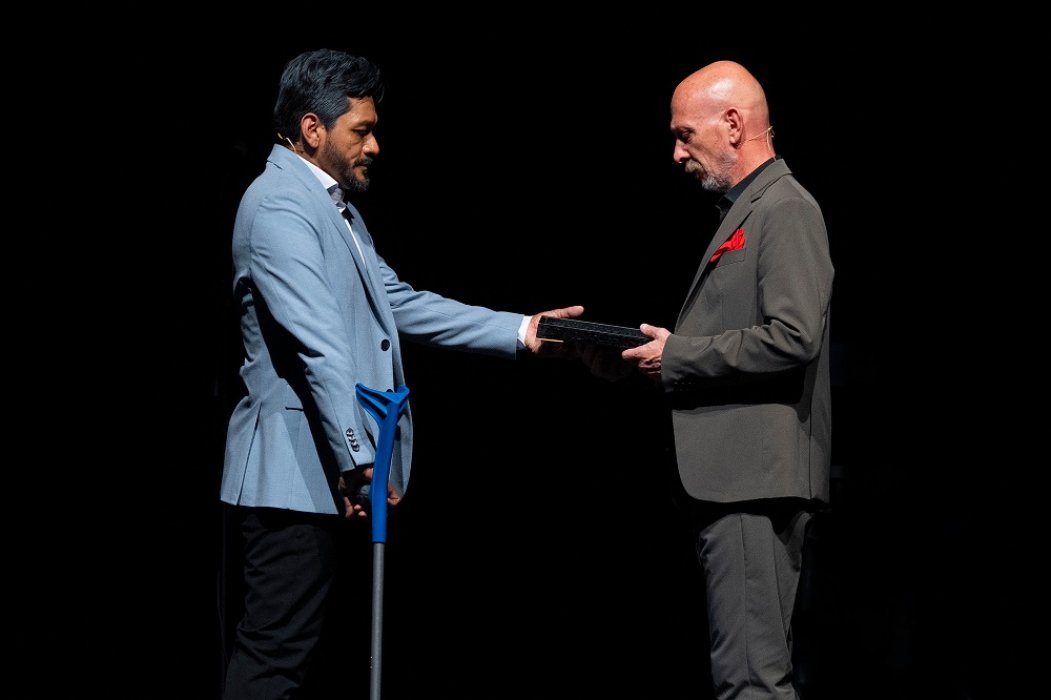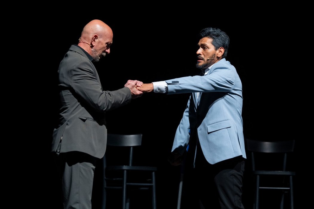 Tratto dal romanzo Apeirogon di Colum McCann (Copyright © 2021, Colum McCann. All rights reserved), lo straordinario libro che ha vinto il Premio Terzani 2022, lo spettacolo è una testimonianza oggi ancor più necessaria davanti all’orrore in Palestina. L’autore, lo scrittore irlandese Colum McCann, ha raccolto nei mille e uno frammenti che compongono il romanzo i brandelli di un conflitto apparentemente senza soluzione, già da prima dell'ormai tristemente noto 7 ottobre 2023, e che ha dato luogo a due anni di violenze inaudite.
