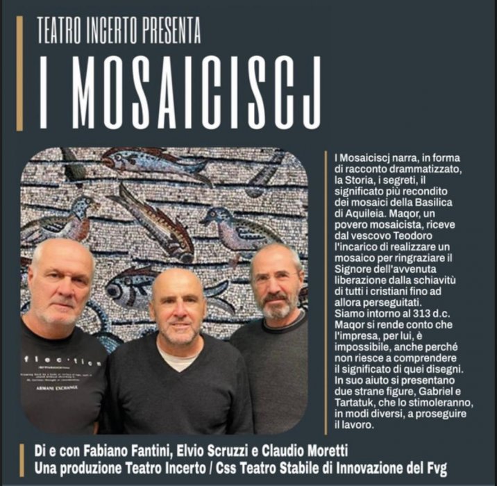 locandinaI Mosaiciscj narra, in forma di racconto drammatizzato, la Storia, i segreti, il significato più recondito dei mosaici della Basilica di Aquileia.