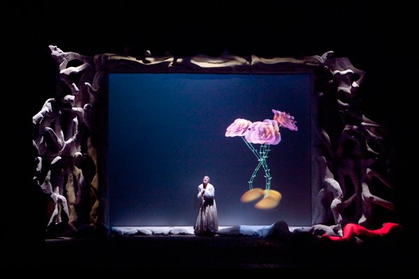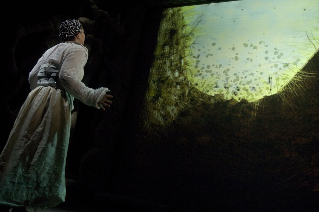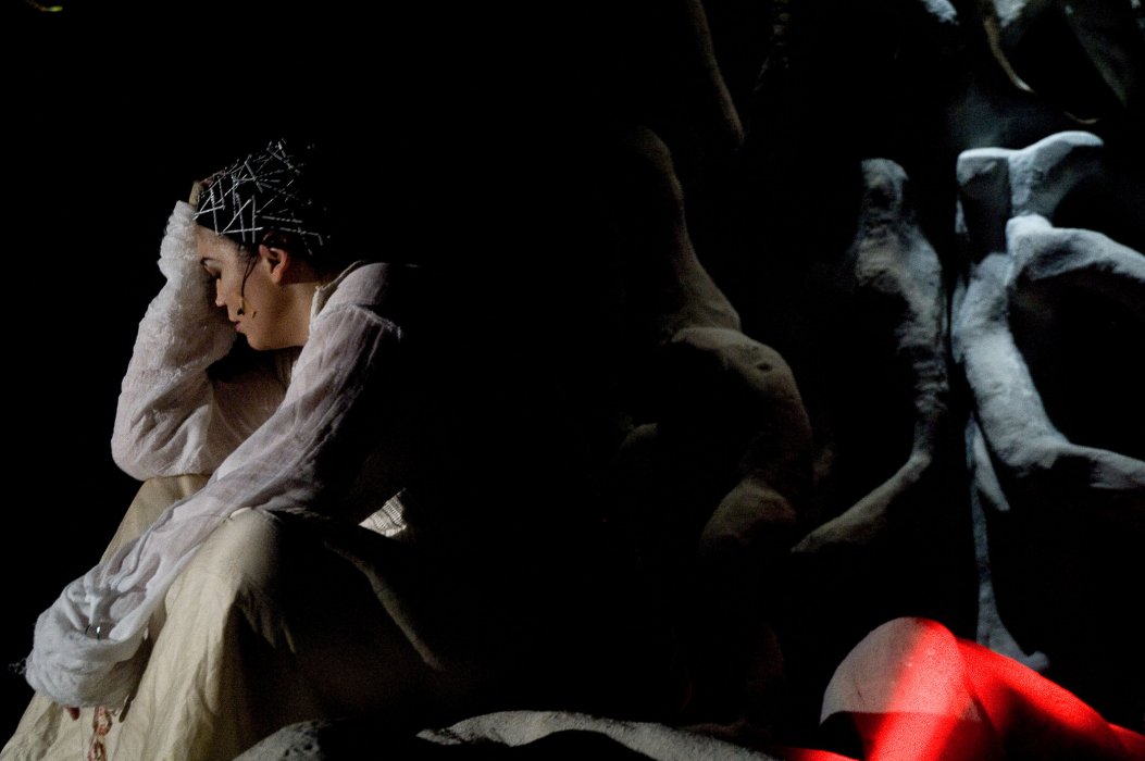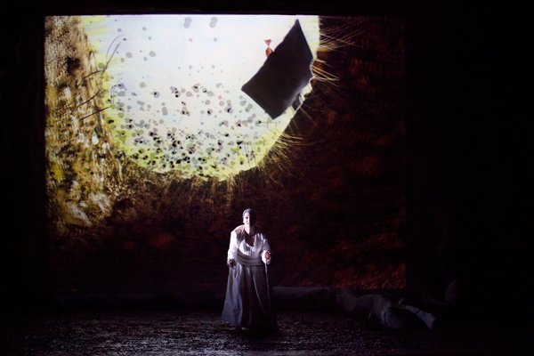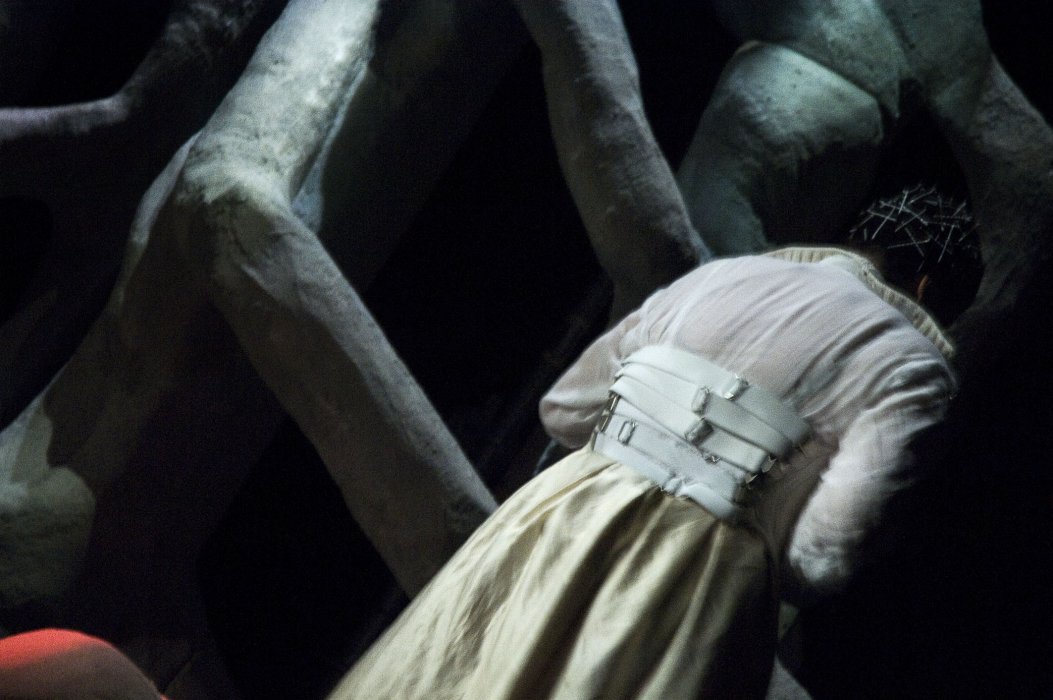 L’obiettivo è costruire un mondo e un linguaggio unici, composti dal suono, dalle immagini e ovviamente dal corpo dell’attrice e dalla scenografia. È una sintesi di segni complessi, che devono costruire un oltresenso in grado di significare qualcosa che ciascuno dei segni individualmente non sarebbe in grado di evocare.