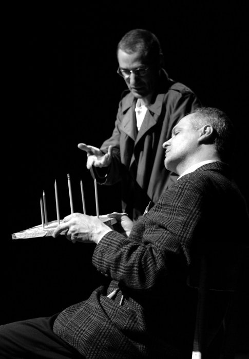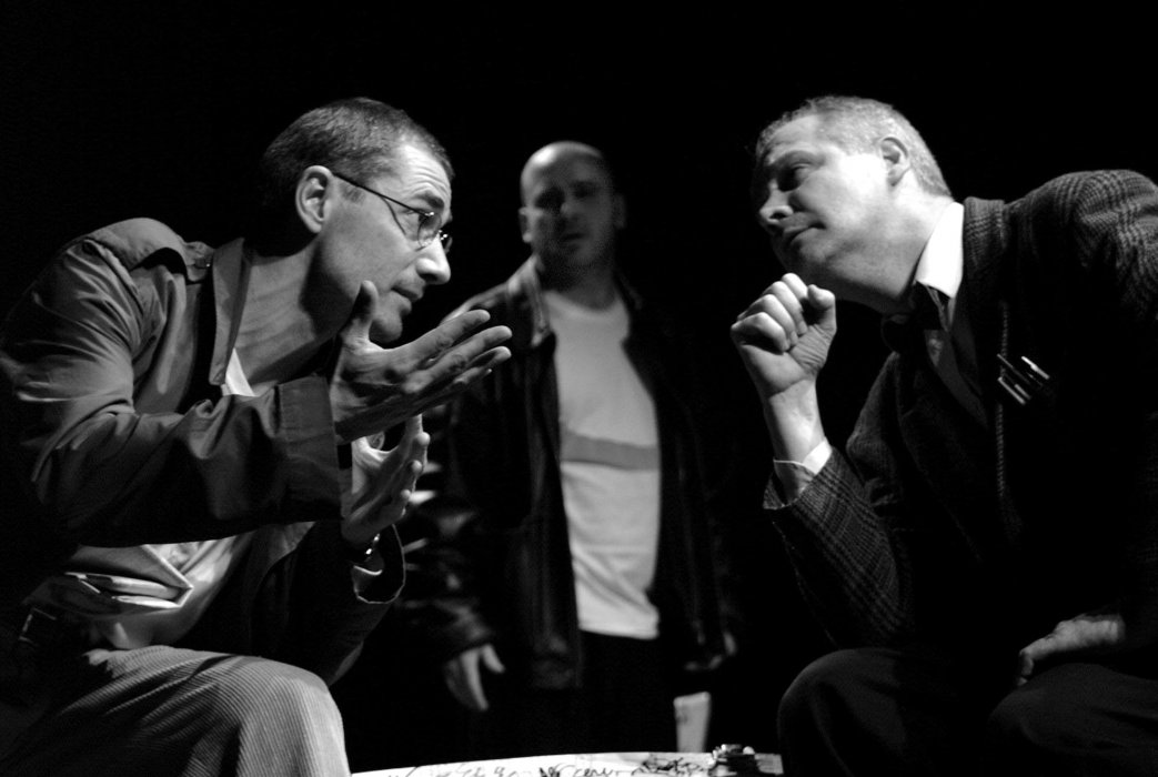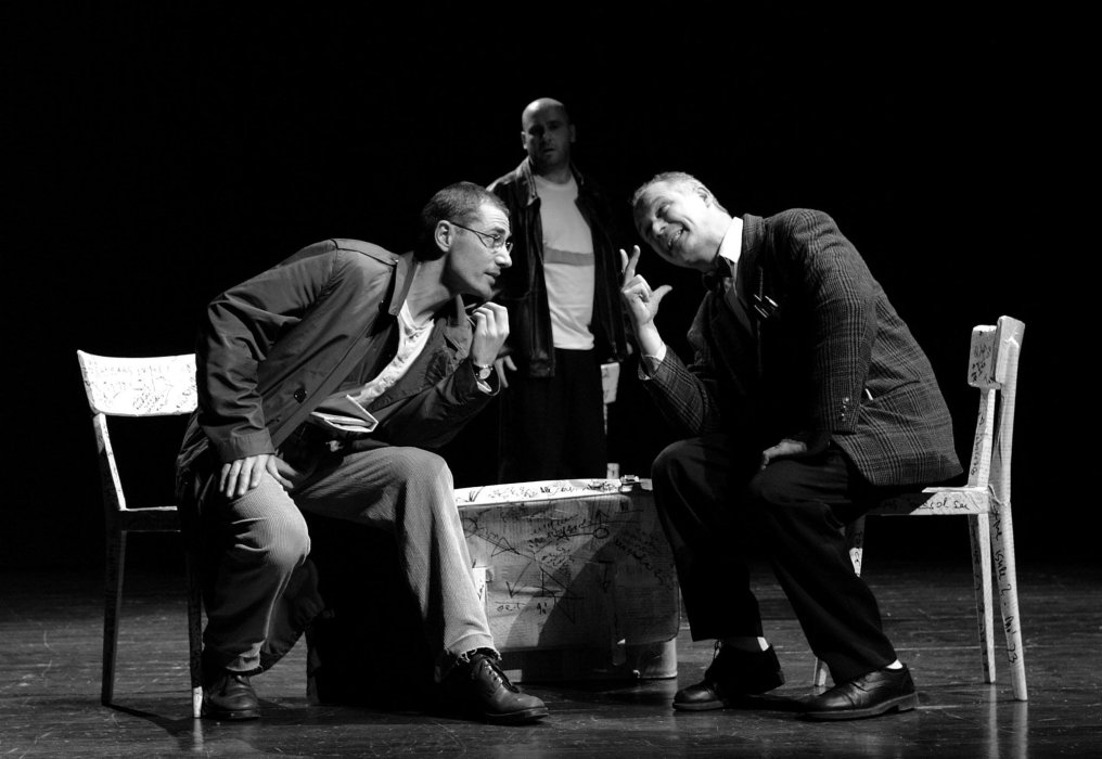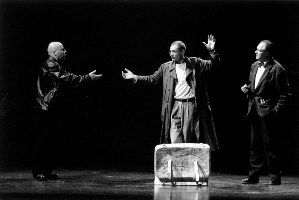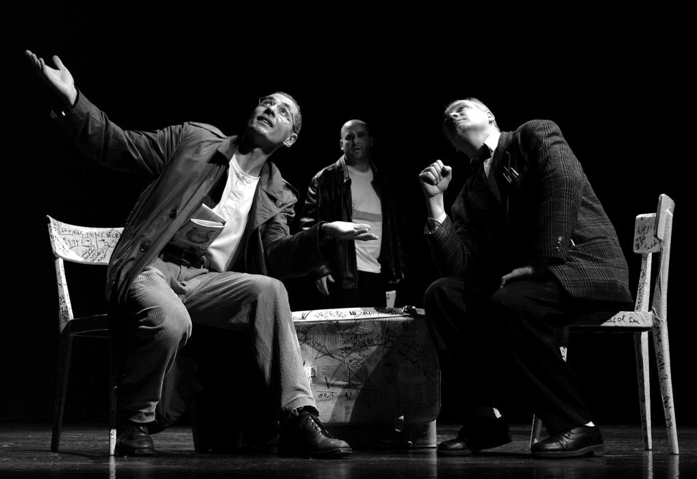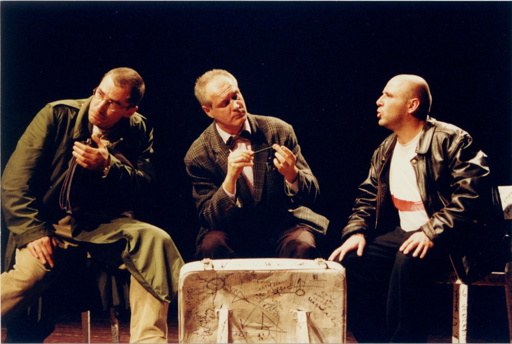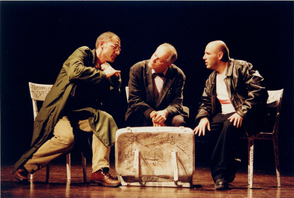 locandina"Un teatro d'attori più che di scrittura, umoristico, che chiamerei, pomposamente, la nuova commedia friulana". Così Elio De Capitani, il regista milanese che li ha diretti nell'avventura straordinaria de I turcs tal Friul e che da allora ne ha continuato a seguire le autonome "gesta comiche" - accoglieva festosamente, qualche anno fa, il debutto in scena di Four, nuova creatura del Teatro Incerto, il trio composto da Fabiano Fantini, Claudio Moretti ed Elvio Scruzzi. A vedere la luce era un teatro capace sia di suscitare una comicità "fuori" da schemi di routine (come recita lo stesso titolo nel suo significato friulano), che di riflettere le aberrazioni della vita di provincia in Friuli, confrontandosi con realtà anche diversissime dalla nostra (come suggerisce invece l'ispirazione del testo friulano a Barbari e alla violenta realtà di una metropoli inglese descritta dal suo autore, Barrie Keefe). A Four seguì l'intermezzo farsesco di Laris, un storia con al centro le imprese di un improbabile terzetto di ladri, abile soprattutto a "rubare" risate, certo più facili, ma frutto di un congegno comico inossidabile. Ma è dal successo, popolarissimo, di quella piéce, che si accende, quasi per contrasto, una nuova urgenza nel trio: quella di proseguire la narrazione teatrale delle storie squinternate dei tre amici - alter ego dei tre attori del Teatro Incerto, virando però con decisione dai sentieri della comicità farsesca per trovare, sempre nel sorriso, un alleato formidabile in un viaggio questa volta più interiore, l'unico filtro al desiderio di guardarsi e di mostrarsi più in profondità. Nasce così Dentri, il terzo capitolo della trilogia comica dell'Incerto, che ha debuttato con successo nel corso della stagione 2000/2001 e ospitato in molti teatri della Regione. Giocando con toni e temi da teatro dell'assurdo, lo spettacolo racconta la storia, tutta da ricostruire per induzione, di tre strani personaggi, che nulla sembrano avere a che fare l'uno con l'altro: uno zingaro giostraio, uno scienziato sconclusionato e un bibliotecario con velleità di sceneggiatore si ritrovano invece, inspiegabilmente, assieme, tra le stesse quattro mura, costretti in uno spazio senza nome, in una dimensione temporale che sfugge alle lancette e allo scorrere quotidiano del tempo. Dentri diventa allora, al tempo stesso, il luogo dell'oblio e della scoperta, il non luogo in cui i tre personaggi inventano il tempo, creano lo spazio, sognano scardinando la consequenzialità di un percorso logico; scrivono, lasciano tracce, si raccontano indagando sulle ombre della loro vita.
