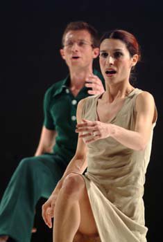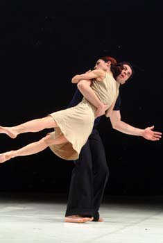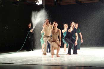 Il grande psichiatra afferma: “non siamo solo corpo organico, ma anche corpo sociale, perché la malattia avviene nella vita, è espressione delle contraddizioni della realtà…”. Corpi cantano e danzano, si sollevano, cadono, segnano semplicemente un volume, insieme, in una partitura ossessivamente collettiva, studiati e osservati da un uomo e una donna eleganti, tra il professionale e il mafioso, che paiono prendere appunti, incamerare sensazioni. Salvo poi essere talmente influenzati da quella danza minuziosamente scrutata da avere la tentazione di interagire.