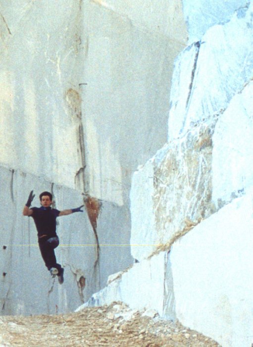Quest’ultima curva procede, lenta, lunga, sospesa, in bilico, e ad ogni metro riaffiora un ricordo, un’immagine, una lotta continua di frammenti danzati, parlati, che fanno riemergere, con il cuore in gola, l’amletico dubbio ad ogni nuovo centimetro: accelerare, non accelerare, vivere o morire.