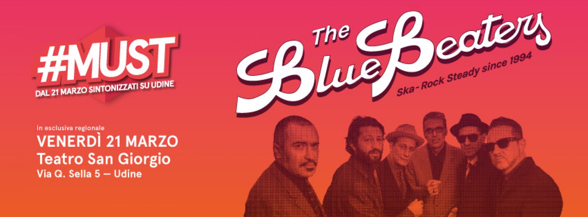 Venerdì 21 marzo - ingresso a partire dalle ore 20 - The Bluebeaters hanno inaugurato la rassegna MuSt travolgendo d’energia vitale il pubblico del Teatro S.Giorgio di Udine con il loro inconfondibile ska e rock steady anni 60-70, contaminato da incursioni soul e Rythm & Blues.