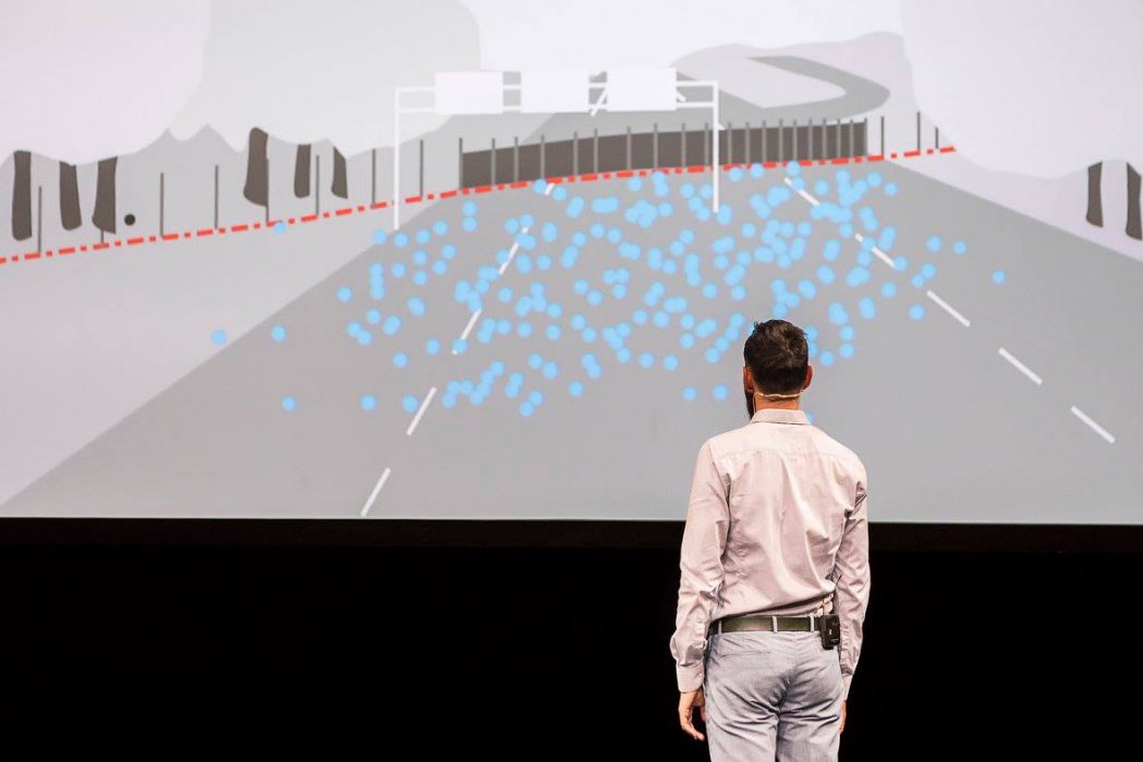 Zaides indaga la relazione tra coloro che cercano di attraversare i confini e chi tenta di fermarli, e attraverso la pratica artistica del re–enactment Talos.2 potrà indicare percorsi etici e svelare interessi politici ed economici.