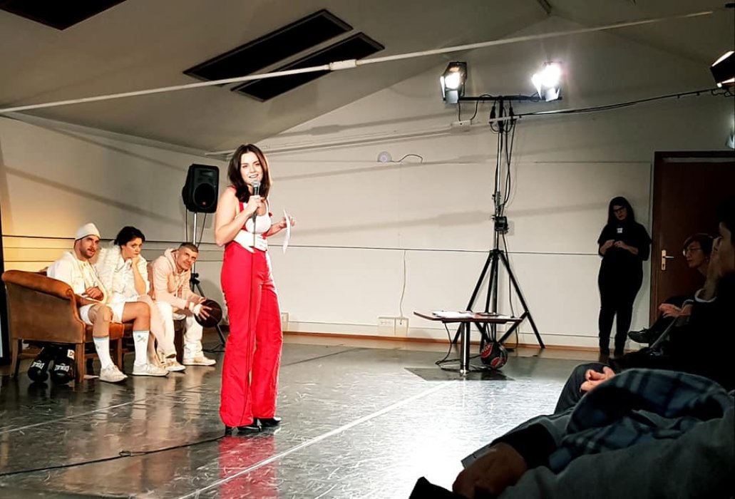 MARTINA BADILUZZI, è un’artista friulana nata nel 1988, vive e lavora a Roma. Negli ultimi anni si è dedicata allo studio dei linguaggi performativi, alla ricerca di un dialogo possibile tra la scrittura, il suo interprete e la scena; e tra queste e il suo pubblico, quel quarto incomodo tragicamente destinato alla morte. Nel 2015 è interprete e co-autrice di Fäk Fek Fik - le tre giovani Werner Schwab, spettacolo pluripremiato, presentato al Roma Europa Festival di Roma 2017 con la guida di Dante Antonelli e Collettivo Schlab. Continua i suoi studi incontrando Lucia Calamaro, il duo artistico Deflorian/Tagliarini, Joris Lacoste e Jeanne Revel e la regista brasiliana Christiane Jatahy alla Biennale di Venezia. Nel 2017 fonda con Giorgia Buttarazzi, Rosvita Pauper, progetto artistico il cui nome è ironicamente ispirato a Roswitha di Gandersheim monaca tedesca, poetessa e prima drammaturga di cui ci siano stati tramandati i testi. Nello stesso anno debutta, con il sostegno di Carrozzerie N.O.T. / RM e grazie alla residenza artistica Through Landscape con il patrocinio della regione FVG, IL VIVAIO - e se ci amassimo quanto ci odiamo lo sai che bello, drammaturgia originale che consolida la collaborazione di Badiluzzi con Samuele Cestola, performer e musicista poli-strumentista autore live del progetto sonoro per lo spettacolo e con Ambra Onofri curatrice dei costumi e dell’ambiente scenico. Il 2018 si apre con MY BEING SPORTY IS A TRAGEDY, workshop attorno agli scritti di Elfriede Jelinek, inaugurando un laboratorio di ricerca artistica e creazione scenica attorno all'opera dell’autrice austriaca Premio Nobel per la letteratura.
