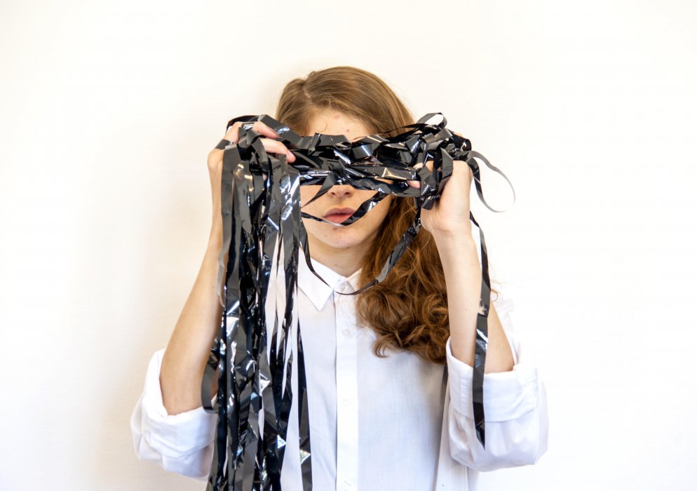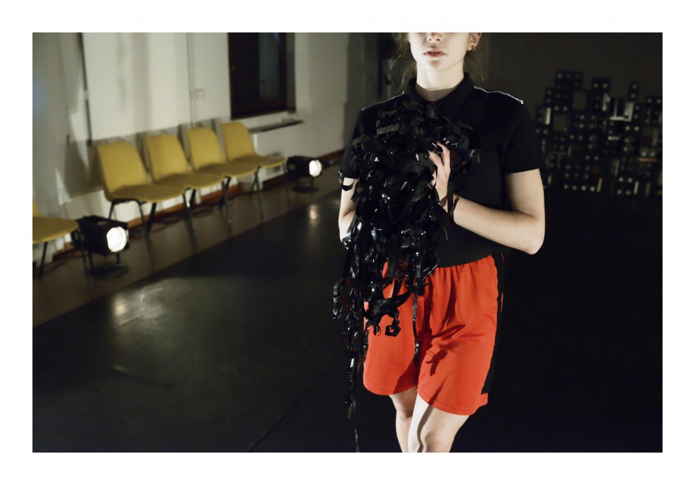 L’ambiente, come una giungla di plastica e liane di nastro magnetico, condiziona il corpo scenico. L’intero processo è il ciclo vitale che collega memoria collettiva e memoria personale, dove ognuno trova e ritorna ai tesori frammentari dei ricordi seguendo il sentiero di un movimento.