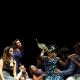 La bellezza di Qui e ora risiede nella sua coralità: il testo è un’orchestra e va suonato come un ensemble per dare vita alla complessità dei personaggi. Tant’è vero che si ascoltano raddoppi, rimpalli ritmici e sintattici, finali aperti da qualcuno, poi chiusi inaspettatamente da un altro, momenti suonati o addirittura cantati, discorsi diretti o semplici narrazioni.