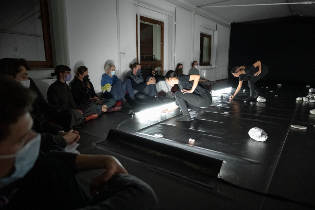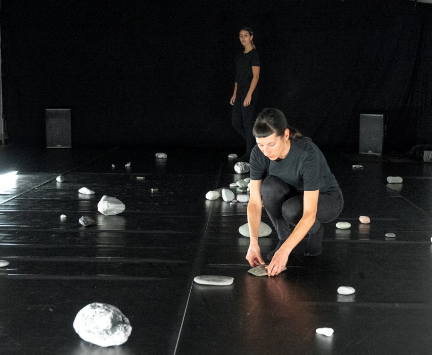 Il lavoro si concentra sul ricercare le qualità di movimento insieme dei corpi umani e delle pietre; la necessità è quella di indagare l’apparente “stasi” dei corpi (umani e rocciosi), che stanno e si muovono, quasi impercettibilmente, attraverso dei microspostamenti. Il movimento è relazione, un assestarsi continuo. Il piacere diventa un divenire nello stare, un tempo di ascolto.