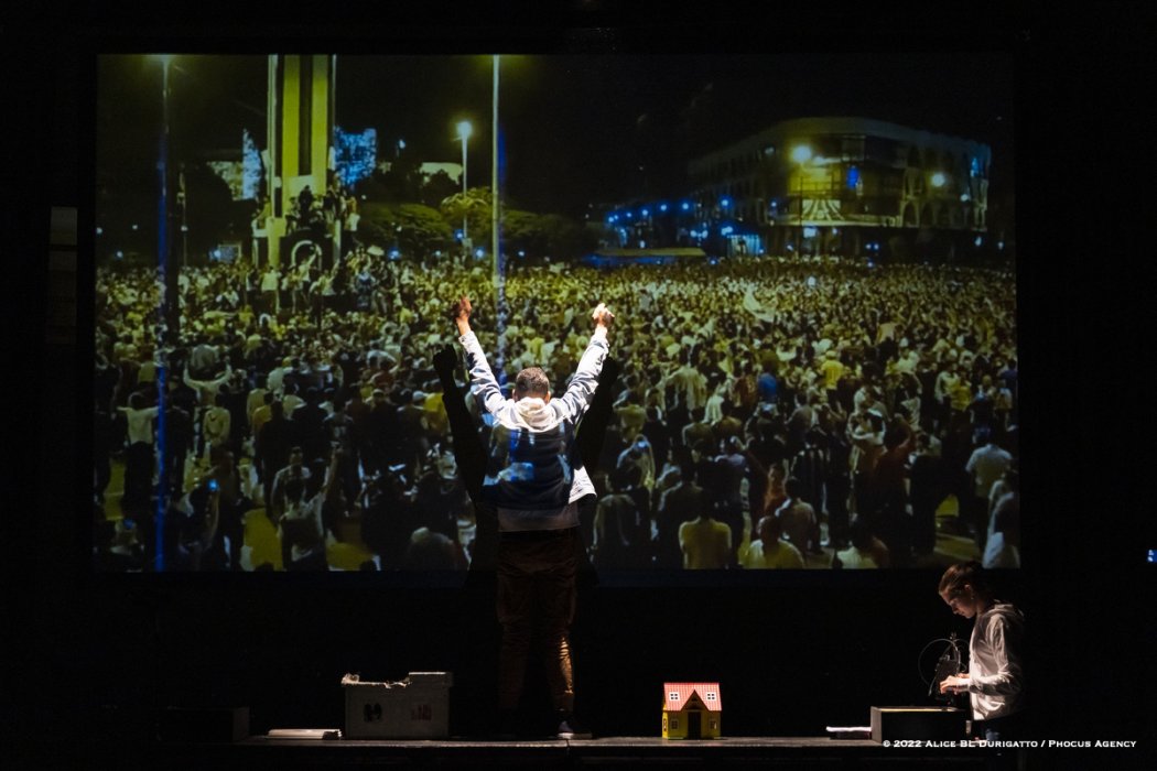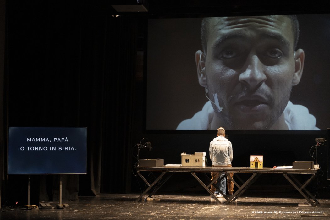 Lo spettacolo va alla ricerca di un equilibrio tra storia personale e storia epocale, in un intenso affresco emotivo dove la tecnologia dilata come una lente di ingrandimento il nostro presente e apre squarci su mondi non poi così distanti, mostra i volti della guerra, entra dentro le case e ne fa vedere i frammenti, i ricordi, i futuri possibili.