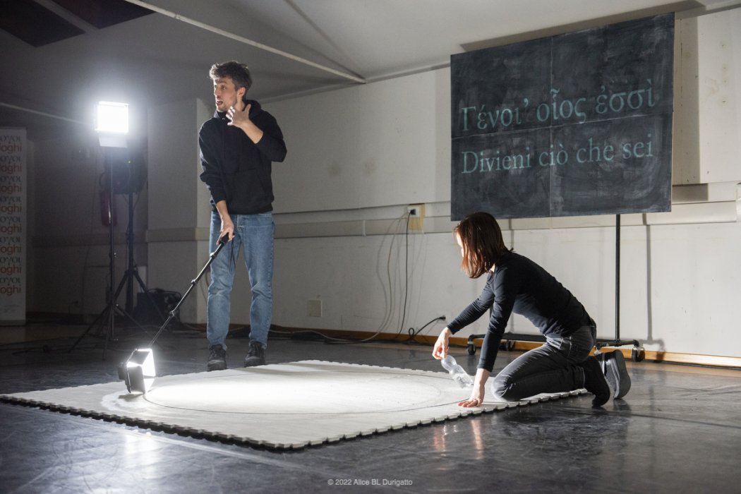 Bildung è una ricerca teatrale su come si trasmette il sapere e su come l’atto di imparare ci aiuta a diventare noi stessi. Questo processo non è solamente intimo e individuale, ma è anche un gesto collettivo di autoformazione dell’umanità. I due performer in scena, nella loro solitudine condivisa, attraversano le pratiche impiegate dall'uomo nel corso dei secoli per trasmettere ai posteri le proprie conoscenze e ritagliarsi un frammento di immortalità: l’oralità, l'immagine, la scrittura: forme generali di trasmissione del sapere intessute di tecniche mnemoniche, pedagogiche e creative, che non smettono mai di evolversi, fondersi, scomparire e ritornare.