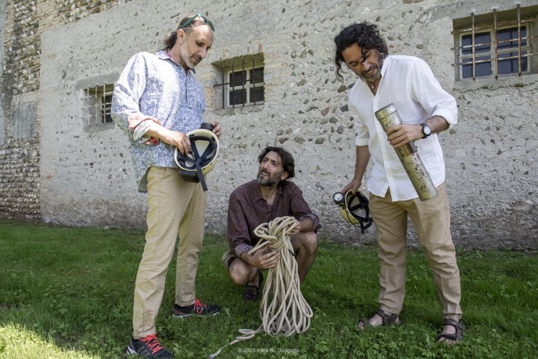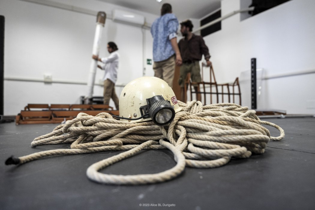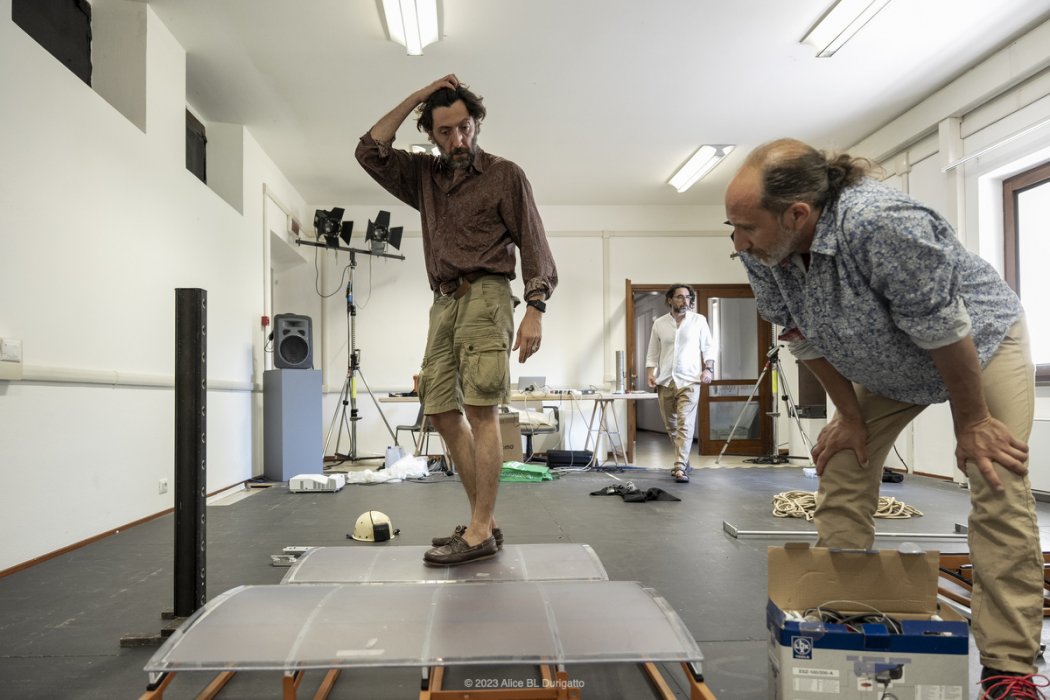 “A primo sguardo non avevamo ben capito la portata del copione, avevamo solo colto questi due personaggi un po’ alla maniera di Aspettando Godot, ma raccontati con una certa rabbia tutta anti-boomer. Facendo le prove invece ci siamo trovati davanti ad un meccanismo teatrale maturo, con argomenti e urgenze del presente (dal fallimento verso il pianeta, alla crisi del linguaggio e degli intellettuali) trattati da un’ottima penna, con grande dote di sintesi e ironia. Adèle Gascuel, l’autrice, è una trentenne che nel testo porta istanze che in Francia sono molto più prioritarie che in Italia. E quindi riesce, nella scrittura, ad essere corpo dolente e non testa pensante. Attraverso i due protagonisti, maschi alfa intenti a curare una ferita nella terra col cemento, Adèle va dentro ai temi con improvvisi lampi di genialità eludendo totalmente la retorica, e questo permette a noi di lavorare alla messa in scena con grande libertà, facendoci riscoprire gli elementi base del teatro, che ne sono il cuore, facendoci sentire tra persone che giocano allo stesso gioco.