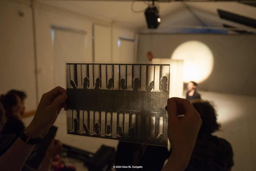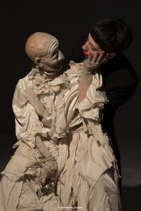 “Il perno attorno a cui ruota la nostra ricerca è il rapporto tra la marionetta, K., e il suo doppio, la marionettista, in un continuo gioco di specchi simbolici. Proprio al principio di questo lavoro con la marionetta ibrida, nata nel 2016 in un workshop con Natacha Belova, ho iniziato a leggere i Karamazov, e il tema della dualità è subito diventato un leitmotiv […].