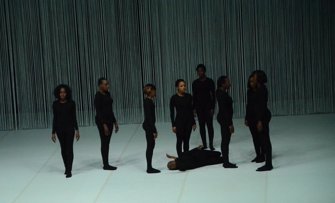 Appaiono nove donne africane, non solo come testimonianza dell' esodo, ma per lasciarci intuire quel magnifico sbriciolamento del gesto nella tenuta del corpo, di come le opposizioni che l'uomo porta in  sé rappresentano un'opportunità nel profondo gioco della vita. Lei si volta sempre indietro ad osservare il passato che  metricamente la nutre: Bambina, madre, donna, animale, bambolina, in cammino, vergine. Ed è veramente misterioso come ancora oggi si possa cadere nel corpo della danza per essere iniziati al tempo. Scorre il tempo nel ballo della ragazza, danzando via le gocce sul terreno. Lei si inizia, sempre, ogni mattina nuova, restituendo il buon umore.