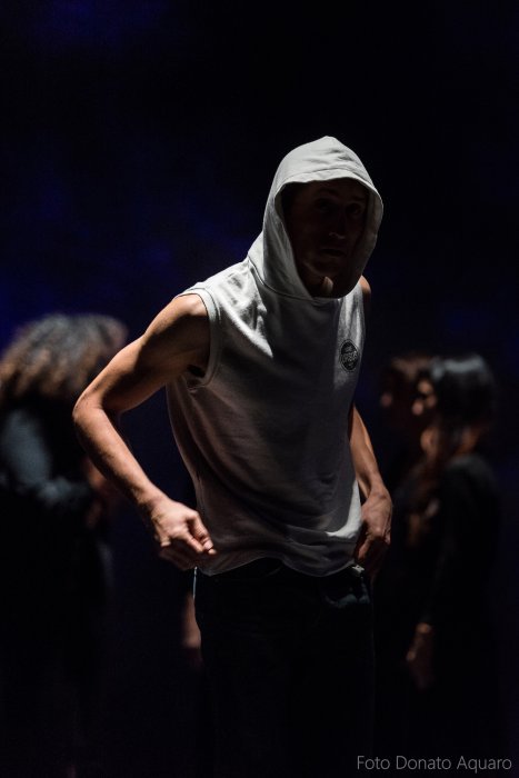 Un teatro totale che si destreggia continuamente tra discorso danzato e parlato, cercando una terza via: la visione, esperienza sinestetica che mescola differenti linguaggi”.