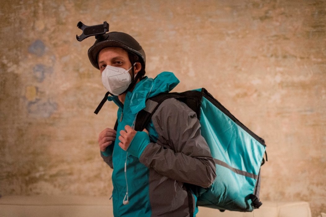La figura che si è immediatamente materializzata nella nostra immaginazione è stata quella del corriere, del rider: le persone che non hanno smesso mai di lavorare, nemmeno nella fase più dura del lockdown. Abbiamo dunque pensato di far travestire un attore da rider, o meglio, di farlo diventare a tutti gli effetti un rider. E di effettuare delle consegne.