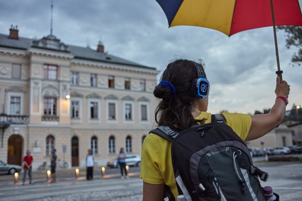 Piazza della Solitudine, Promenade è una performance itinerante in cuffia che mette in relazione una condizione profondamente intima, come quella della solitudine, con lo spazio pubblico di Udine, creata dal collettivo Wundertruppe.
