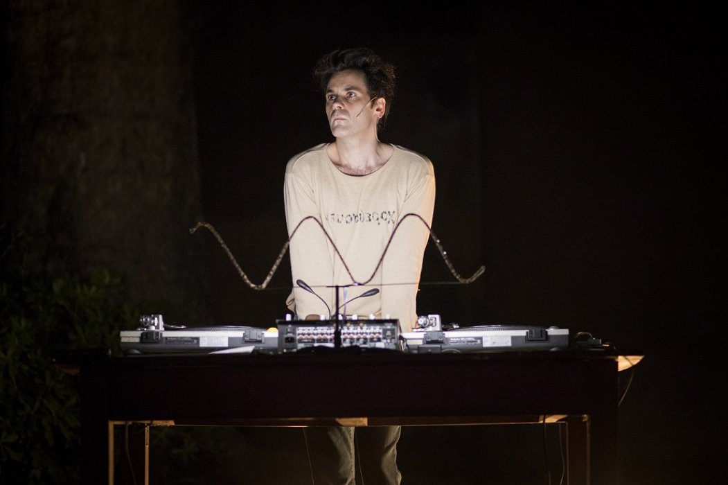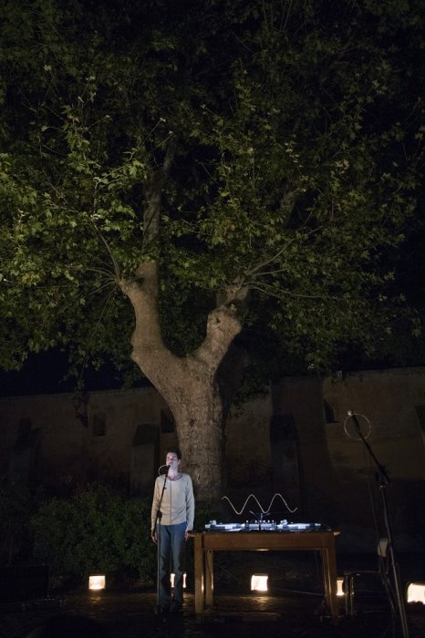 “Tra vecchi dischi e nuove impressioni, un corpo solo, quello di Gabriele Portoghese, all’ora viola, sospesa tra giorno e notte, segue orme poetiche e sonore, per le strade di un mondo che morendo rinasce.