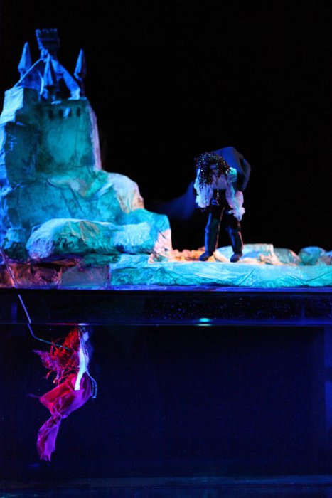 La particolarità di questo spettacolo è la tecnica: marionette acquatiche. Lo spettacolo infatti viene fatto all’interno di un acquario nelle scene marine, e al di sopra di esso nelle scene nella superficie.