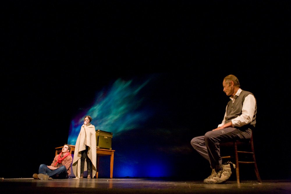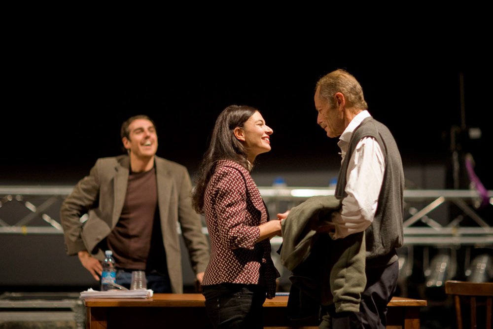 In questo particolare allestimento a cui al titolo del romanzo si aggiunge la parola “Provando”, si assiste proprio alla messinscena di un lavoro teatrale, si vede cioè un teatro in prova, con in scena l’autore stesso del testo – un Erri De Luca pronto ad affascinarci con il suo ragionare contagioso e umanamente spirituale - assieme al regista e all’attrice che interpreta Miriam/Maria, tutti appassionati interpreti di uno spettacolo in fieri, che si va costruendo.