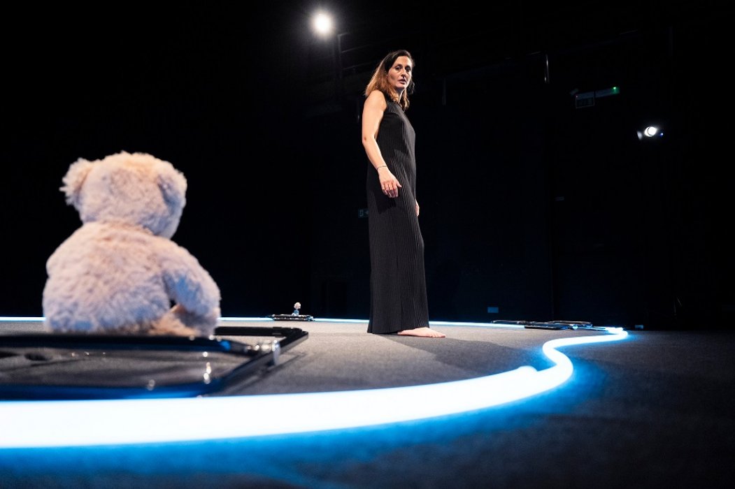 Il processo drammaturgico prende avvio dall’etimologia del nome Penelope, anatraccola, con un esplicito riferimento all’episodio dell’infanzia del personaggio, in cui la futura moglie di Ulisse fu vittima di un tentativo di affogamento da parte del padre. In uno spazio chiuso e asettico, simile a un laboratorio di analisi, viene messa sotto il microscopio l’iconica storia di Penelope. L’intento è quello di restituire alla figura universale del mito il suo sguardo negato, quello della donna che l’ha subito-vissuto, riconoscendole così una funzione attiva nella narrazione della sua vita. La protagonista, bloccata in questo spazio, ripete il gesto di fare e disfare la scena, proprio come l’omerica Penelope faceva e disfaceva la tela. Questo gesto simbolico permette di ripercorrere la sua esistenza, segnata dal rapporto con il padre, trascorsa nell’attesa di un uomo che non è mai tornato, e interrotta per un figlio che, una volta cresciuto, ha scelto di non aspettare e di partire.