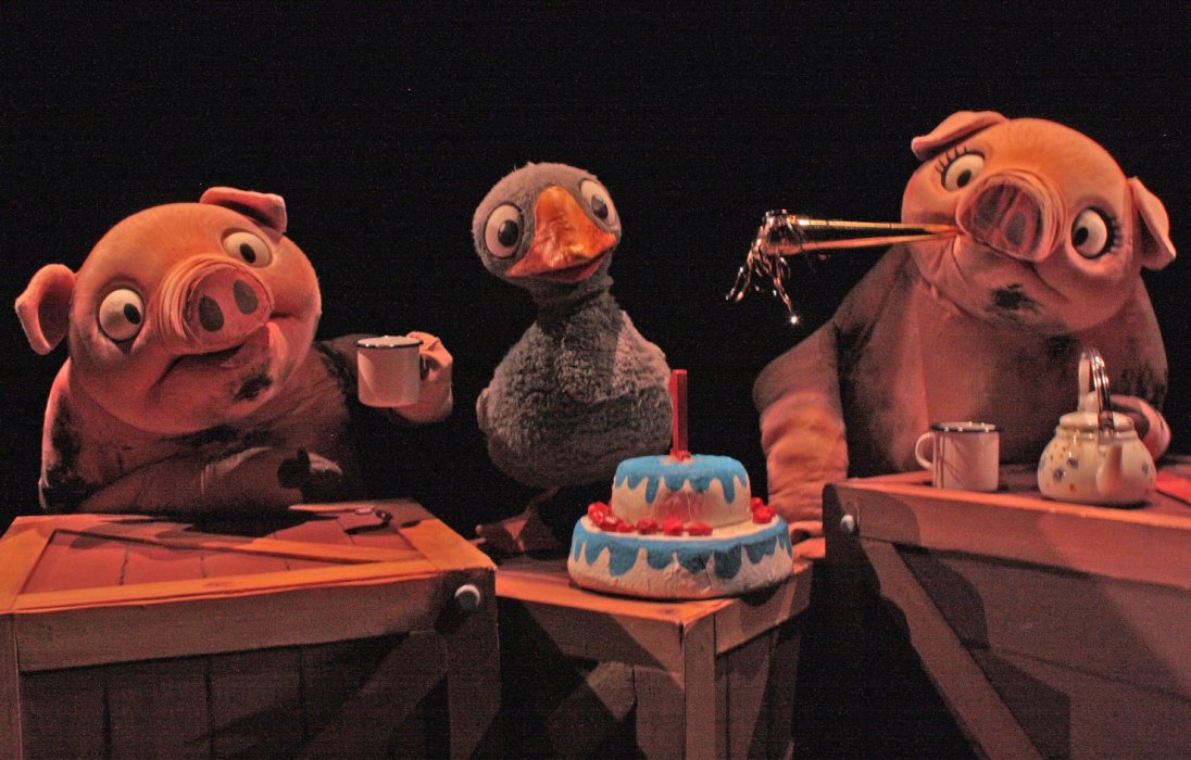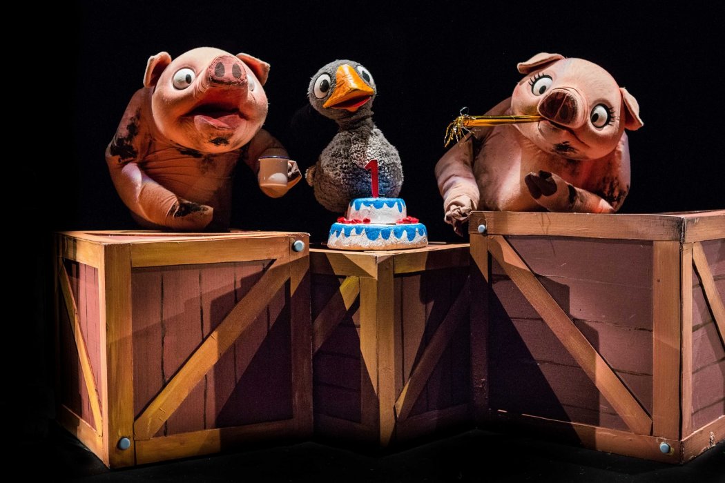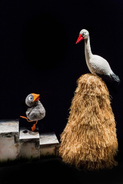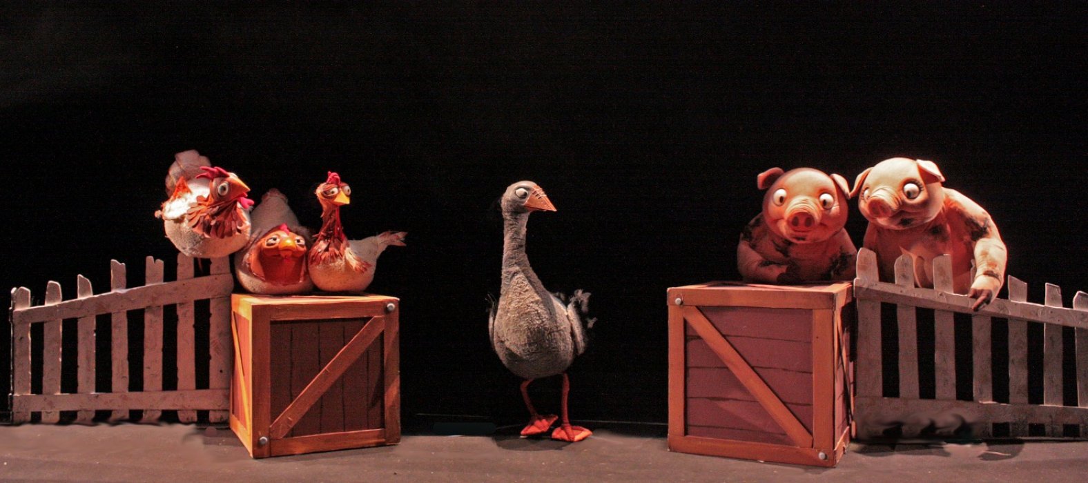 Lo spettacolo narra la sua storia cosicché i bambini possano immedesimarsi nel protagonista che, ancora pulcino, viene portato nella fattoria dove si svolge l’intera vicenda. Qui, incontra gli altri personaggi: le galline, tre vecchie zie brontolone dal cuore tenero, i maiali, marito e moglie, che diventano genitori adottivi affettuosi e la cicogna, viaggiatrice instancabile che conosce il mondo, ideale di bellezza e libertà.