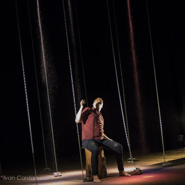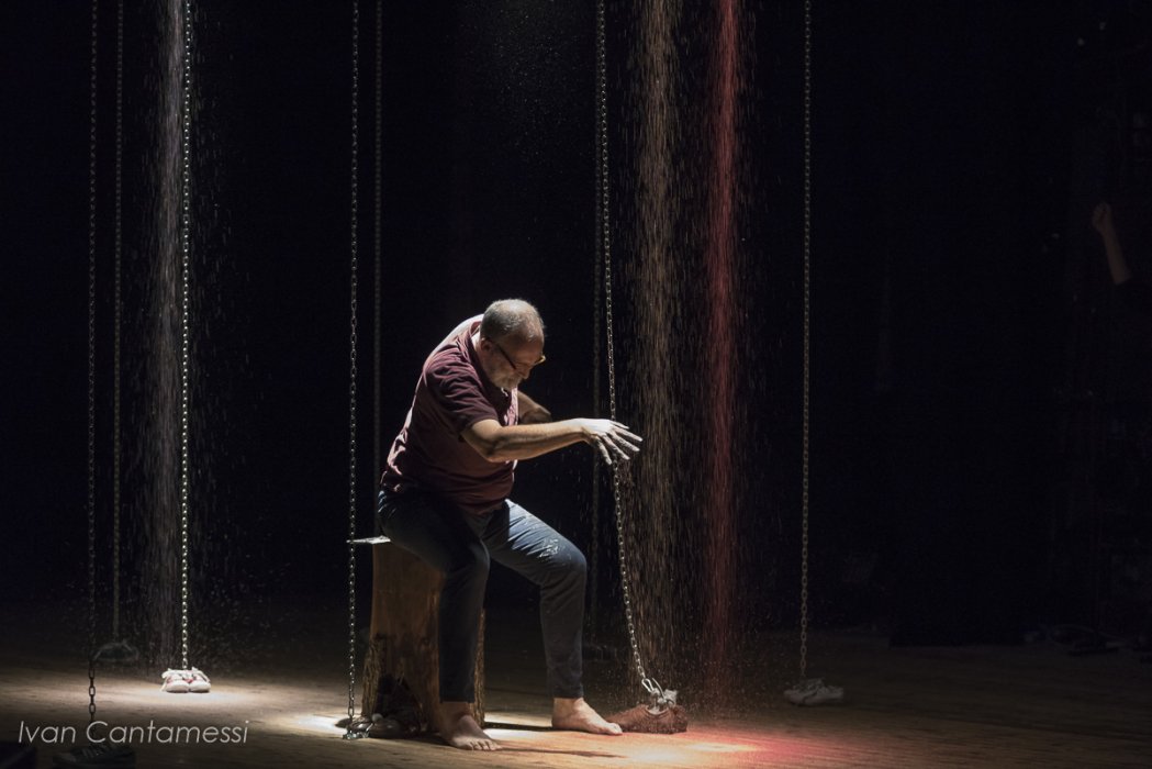 Lo spettacolo procede col dipanarsi delle sue parole, coadiuvato da un aiutante magico che fa apparire e sparire dalla scena un mondo di oggetti, che evocano gli scenari che ci vengono raccontati.